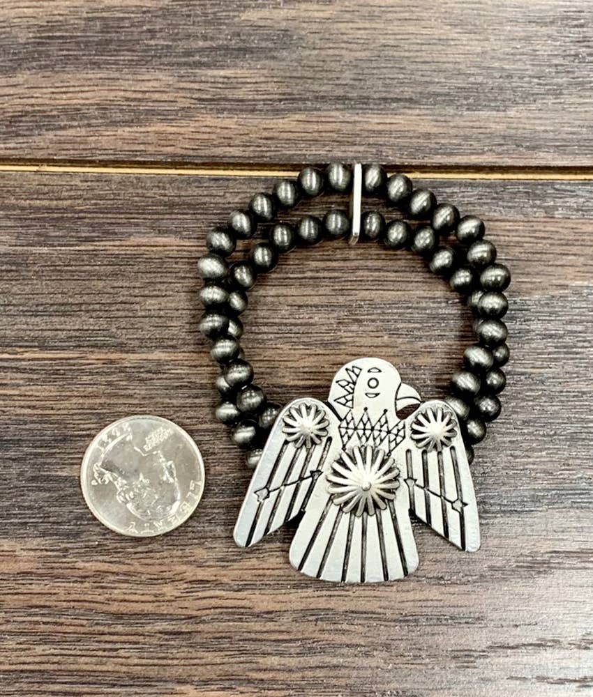 Big! Thunderbird Charm, 2-strand 6mm Navajo Bead Stretch Bracelet