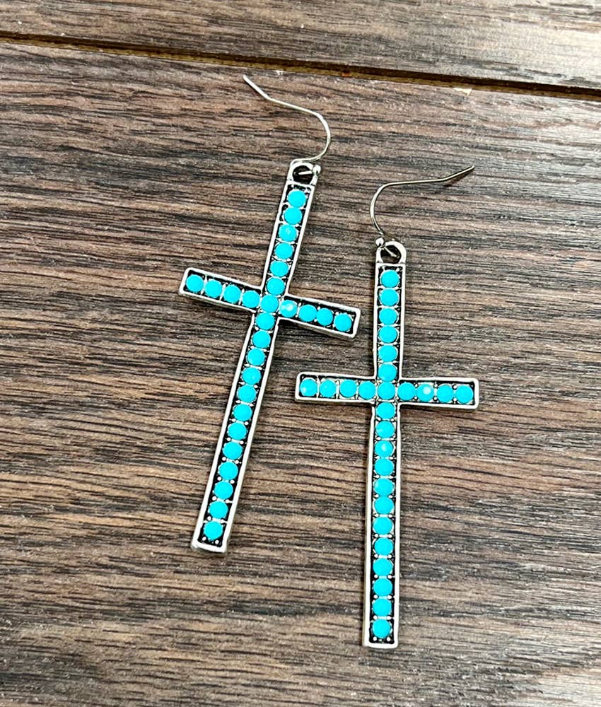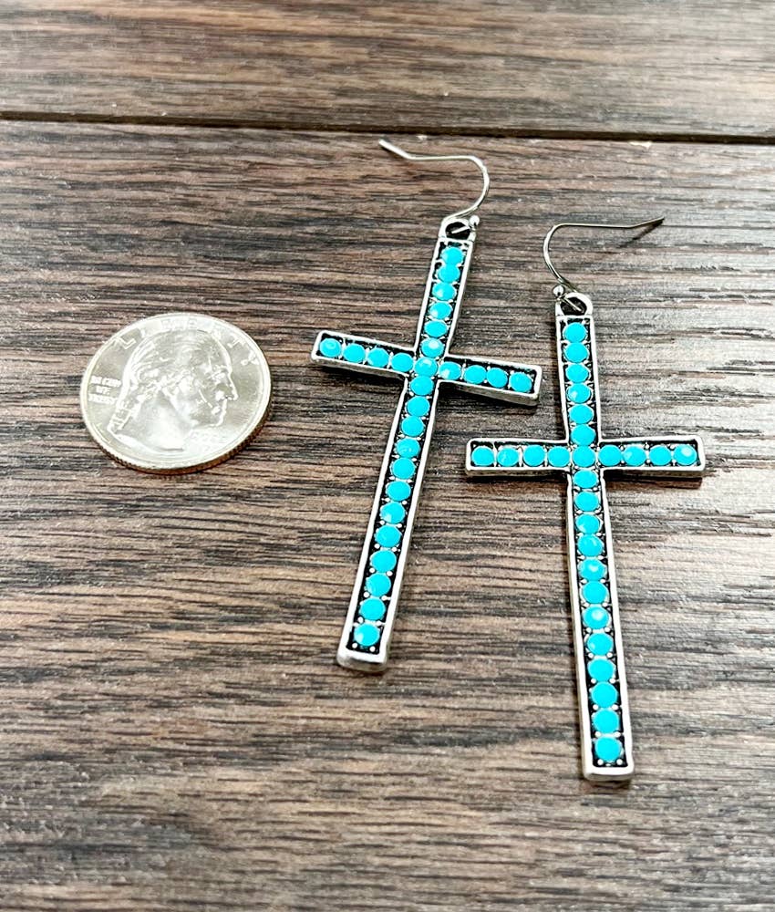 2.5" Long, Cross Crystal Earrings