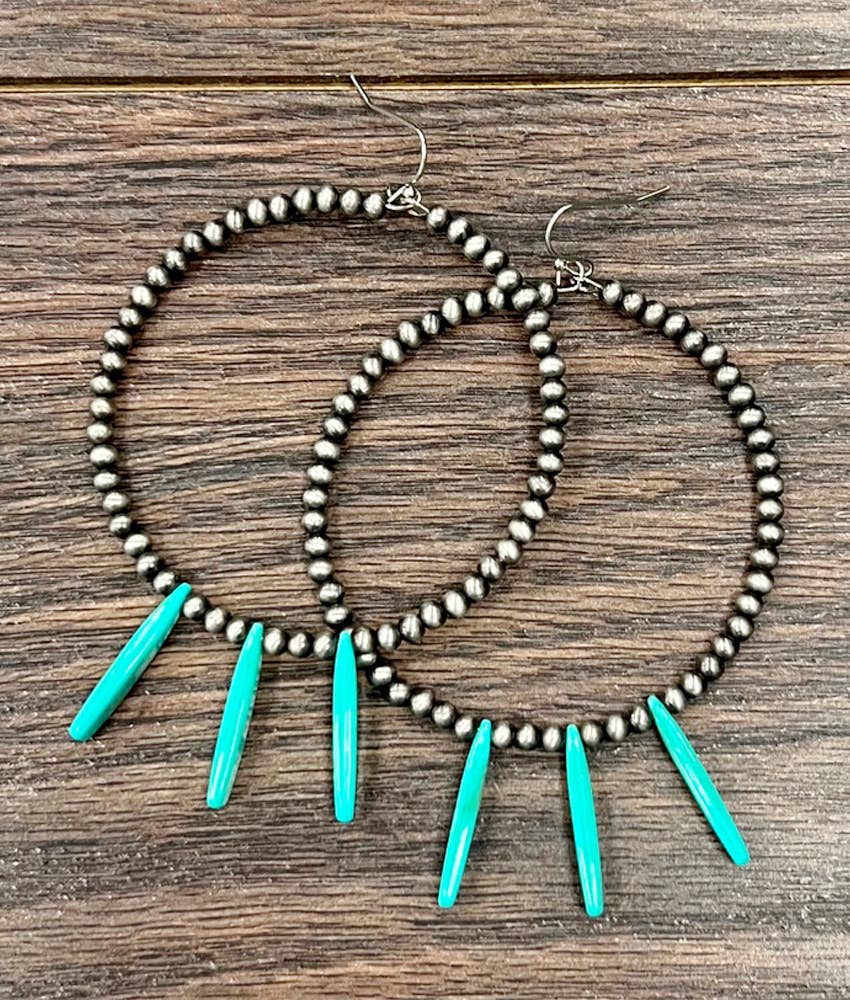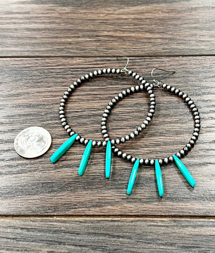 2.5" Long, Handmade 4mm Navajo Bead, 65mm Hoop Earrings