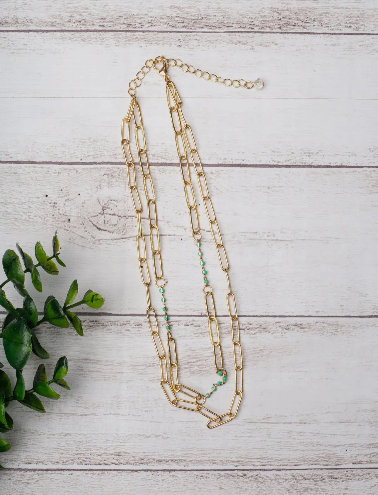 Don't Call Me Honey Turquoise Bead Silver Linked Chain Necklace