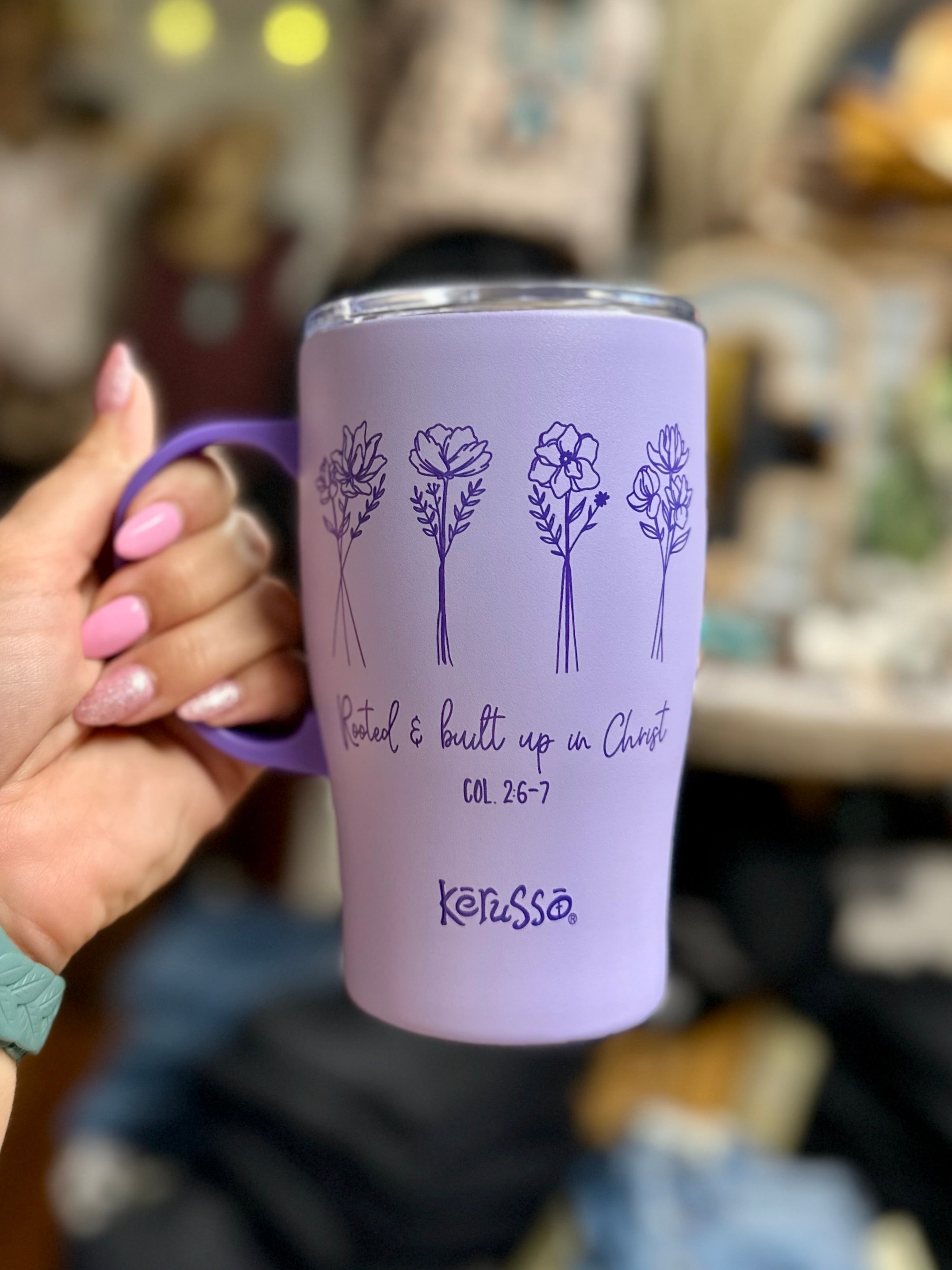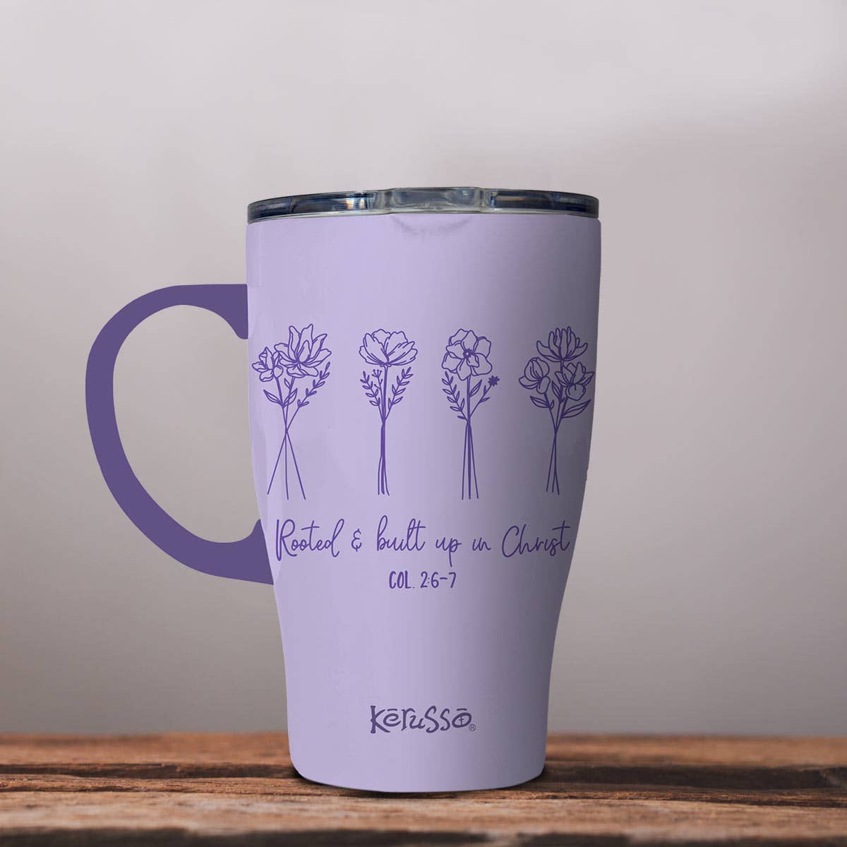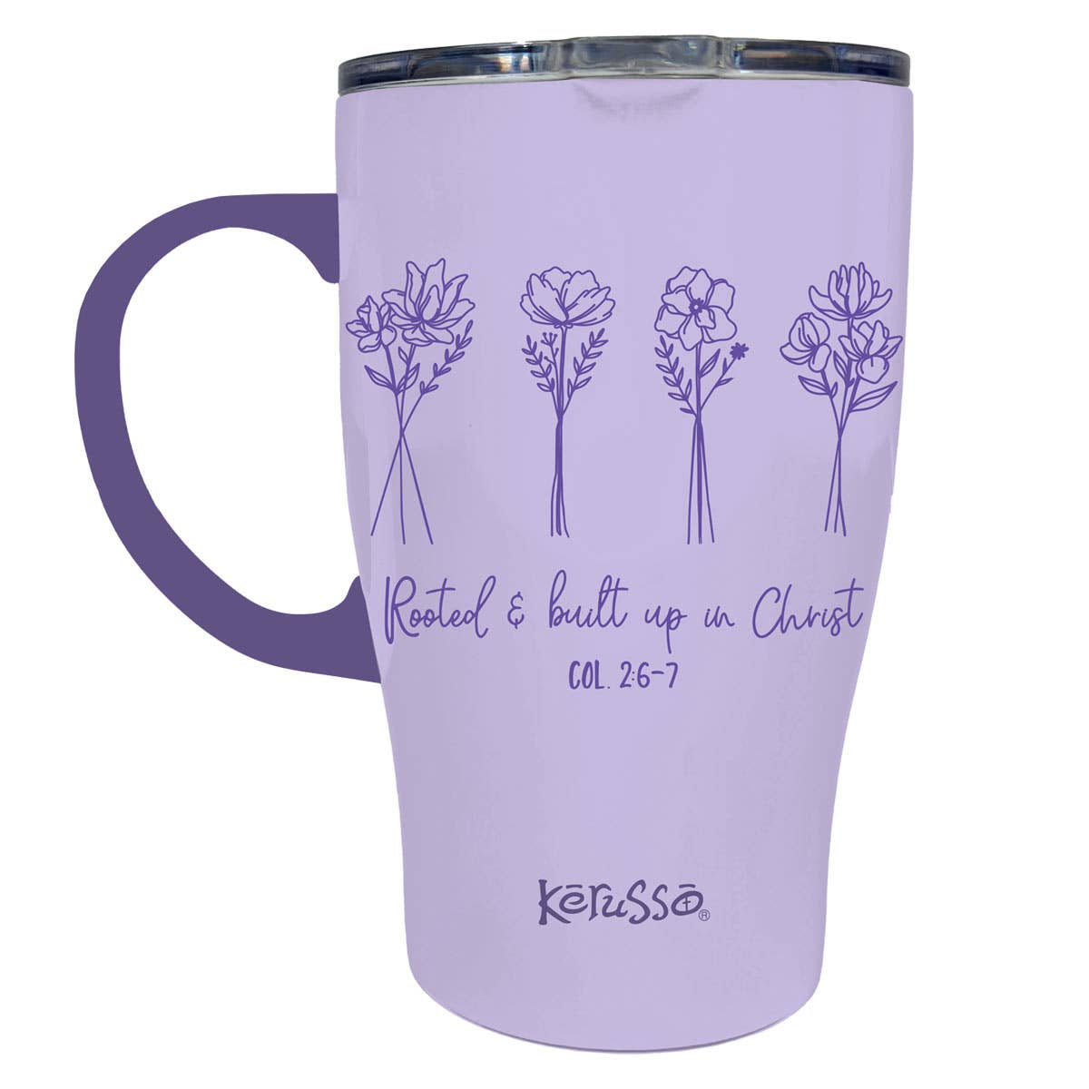 Bloom where you are planted with every sip from this chic “Rooted” Kerusso® 15 oz. Stainless-Steel Mug with Handle in Lavender. It’s a practical vessel that keeps drinks ice-cold or piping hot for hours—perfect for home, work, or the car. Through the gift of God’s grace, we’ve been given everything we need to grow deep roots of faith, to share God’s love with others, and to show gratitude for every blessing.