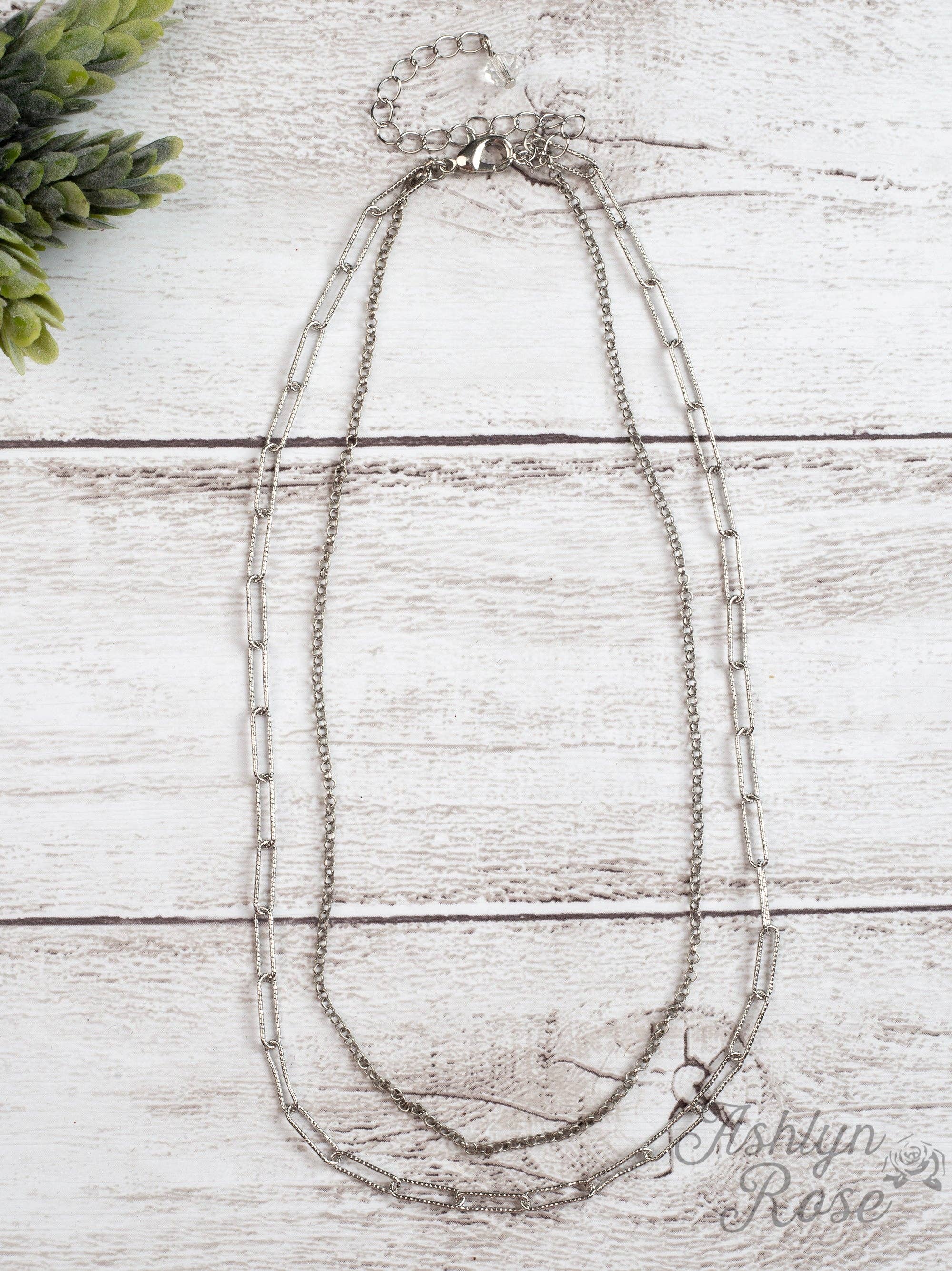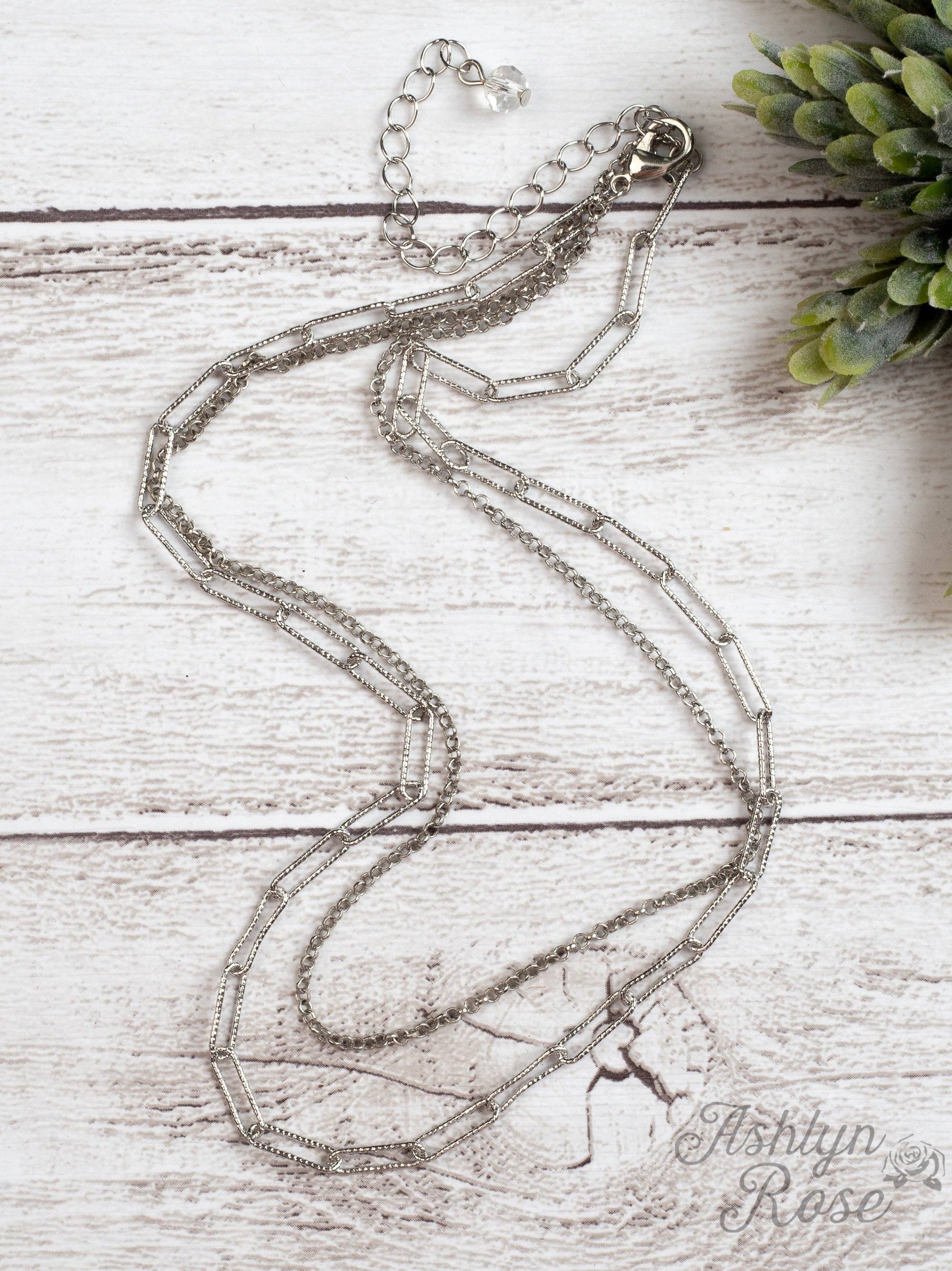 Unveiling the Let's Link Up Double Chain Silver Necklace from Southern Grace. This link & chain necklace is a timeless piece that embodies the strength and sass of Southern women. Whether you're going from the farm to a fabulous night out, this necklace will be your reliable companion. It's a versatile piece that adds a touch of elegance to any outfit. At Southern Grace, we strive to provide quality and affordability, ensuring every woman feels her best. This necklace is a testament to our mission. Experience the South in every wear with our Let's Link Up Double Chain Silver Necklace.