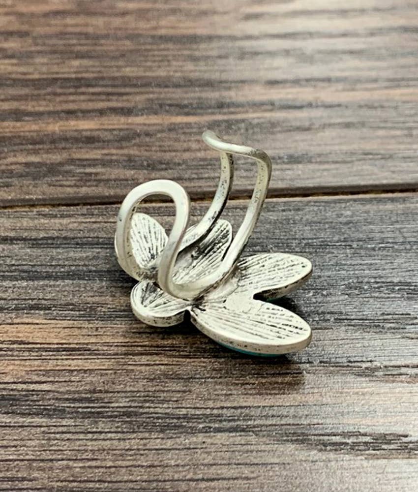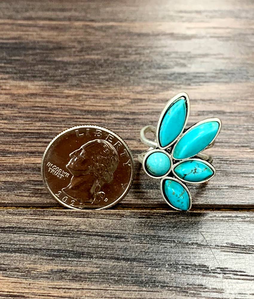 1.2 " Long, Navajo Turquoise Ring, Brass Dual Adjustable Band