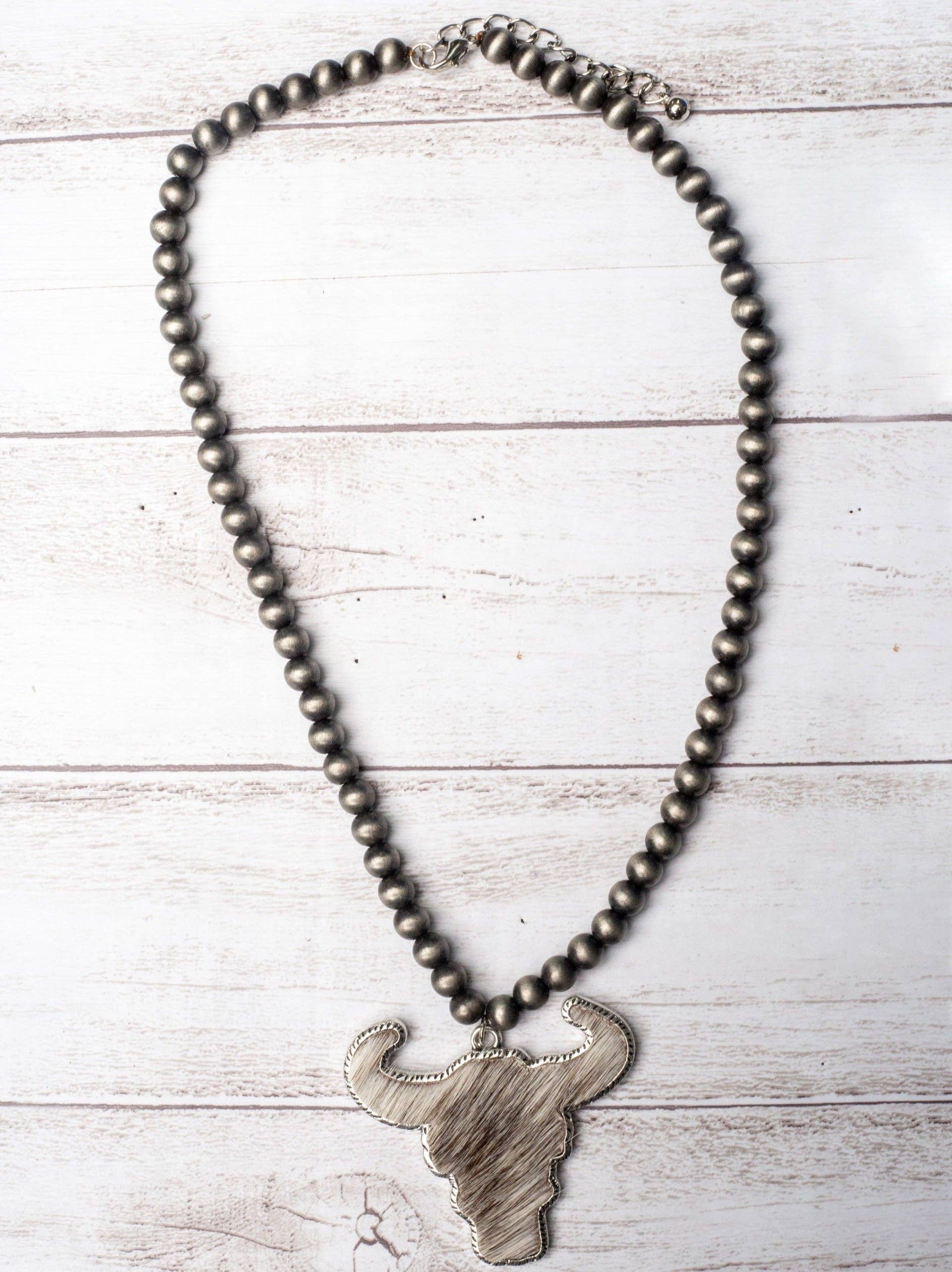 ROUND UP COW SKULL PENDANT ON NAVAJO PEARLS NECKLACE