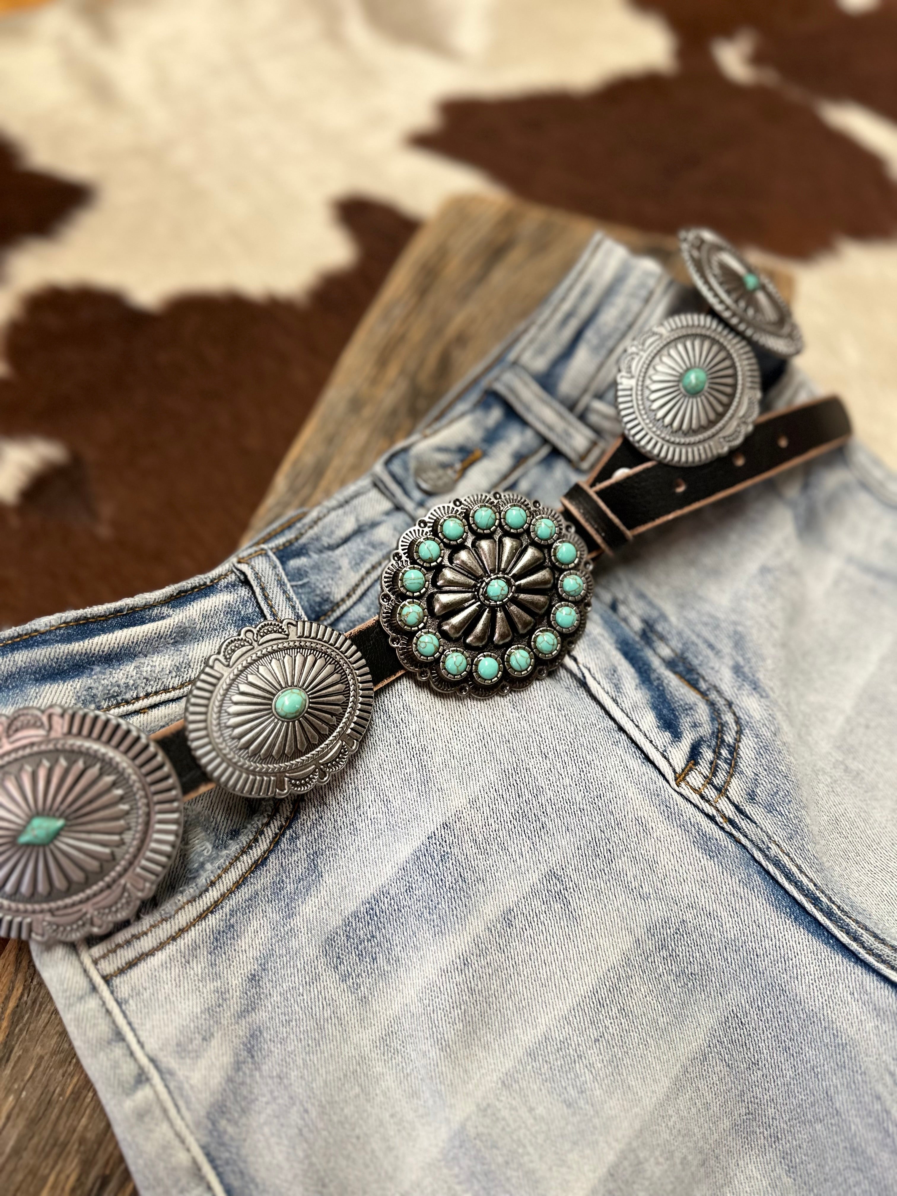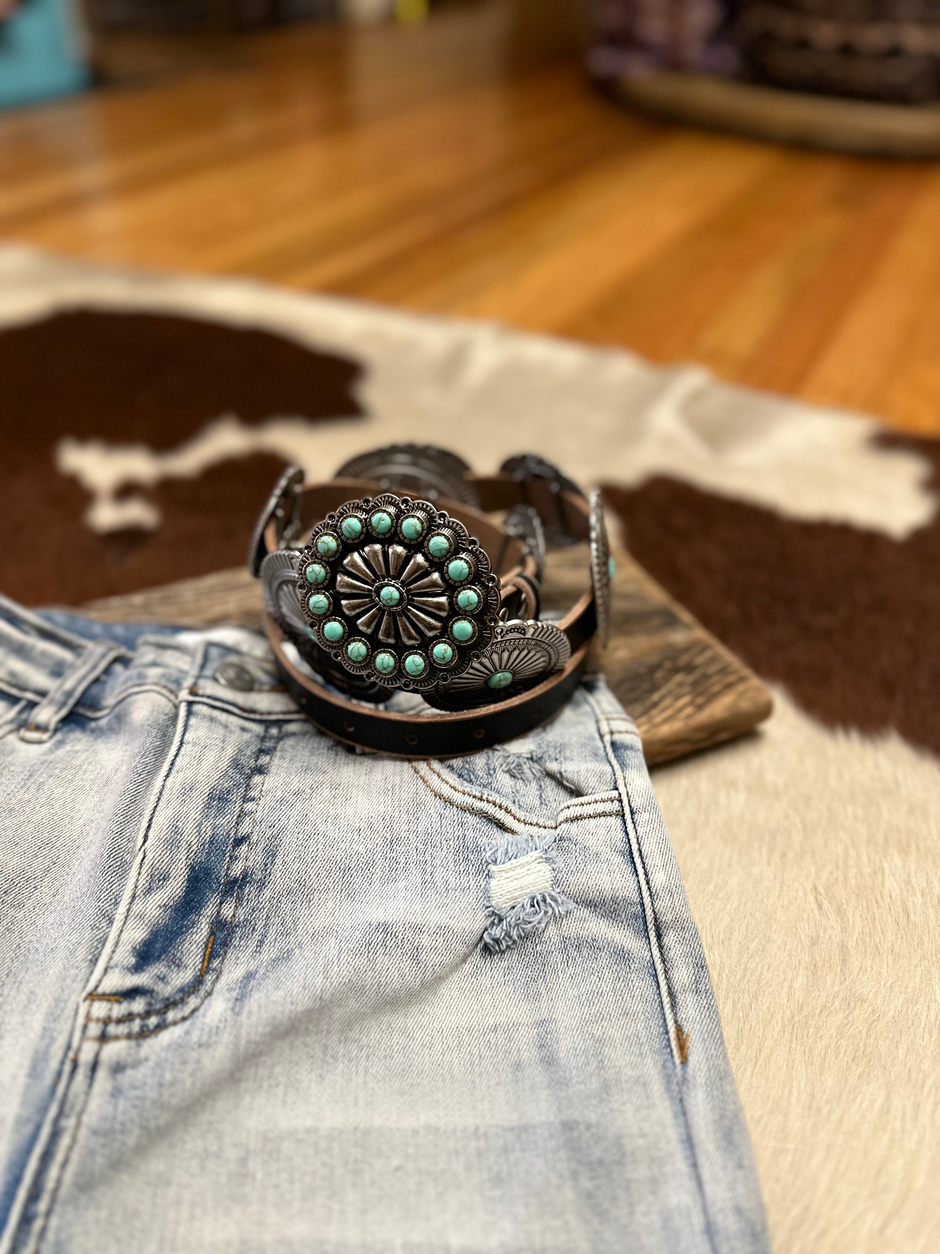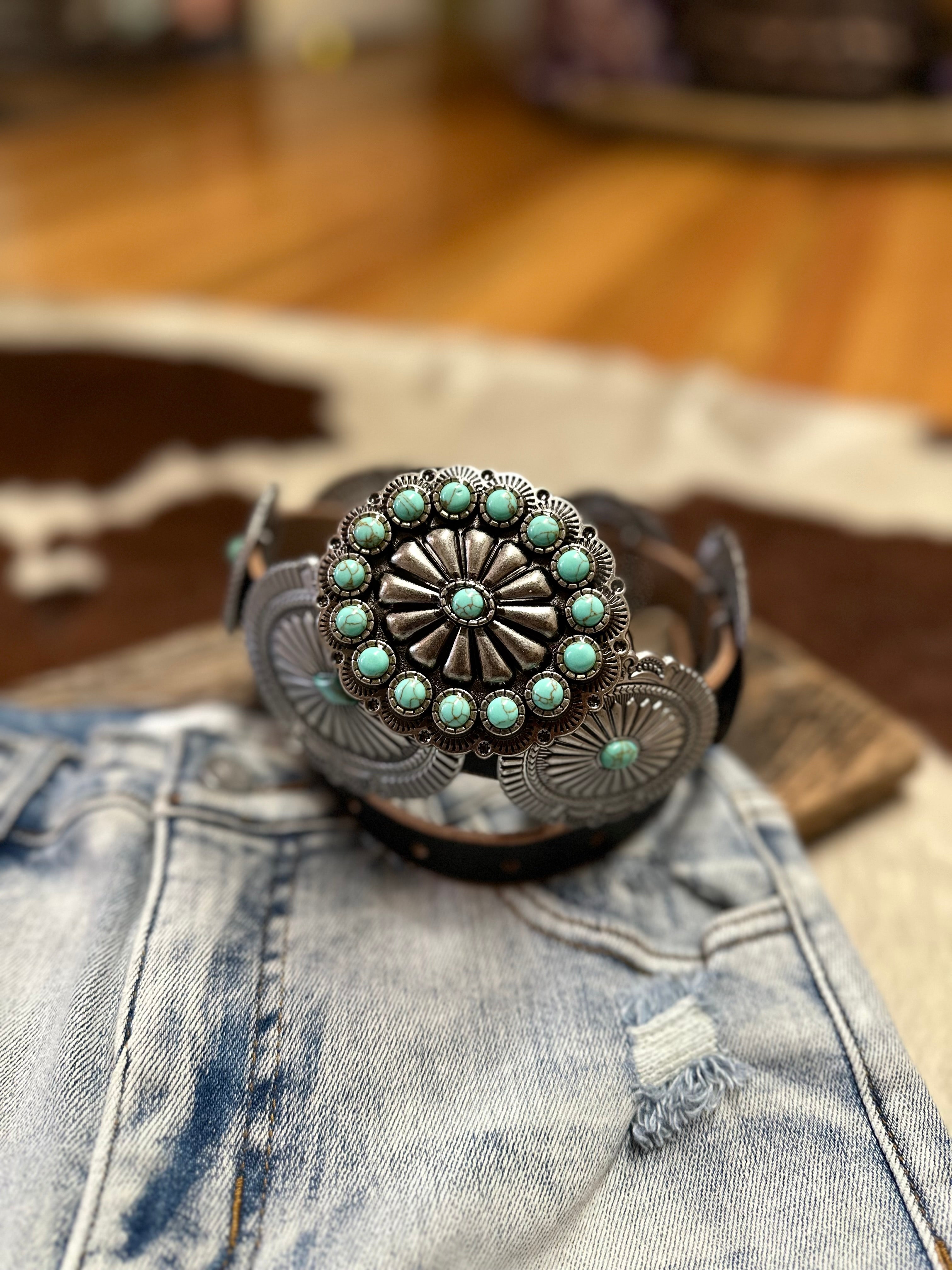 Turquoise Buckle w/ Fully Packed Oval Conchos