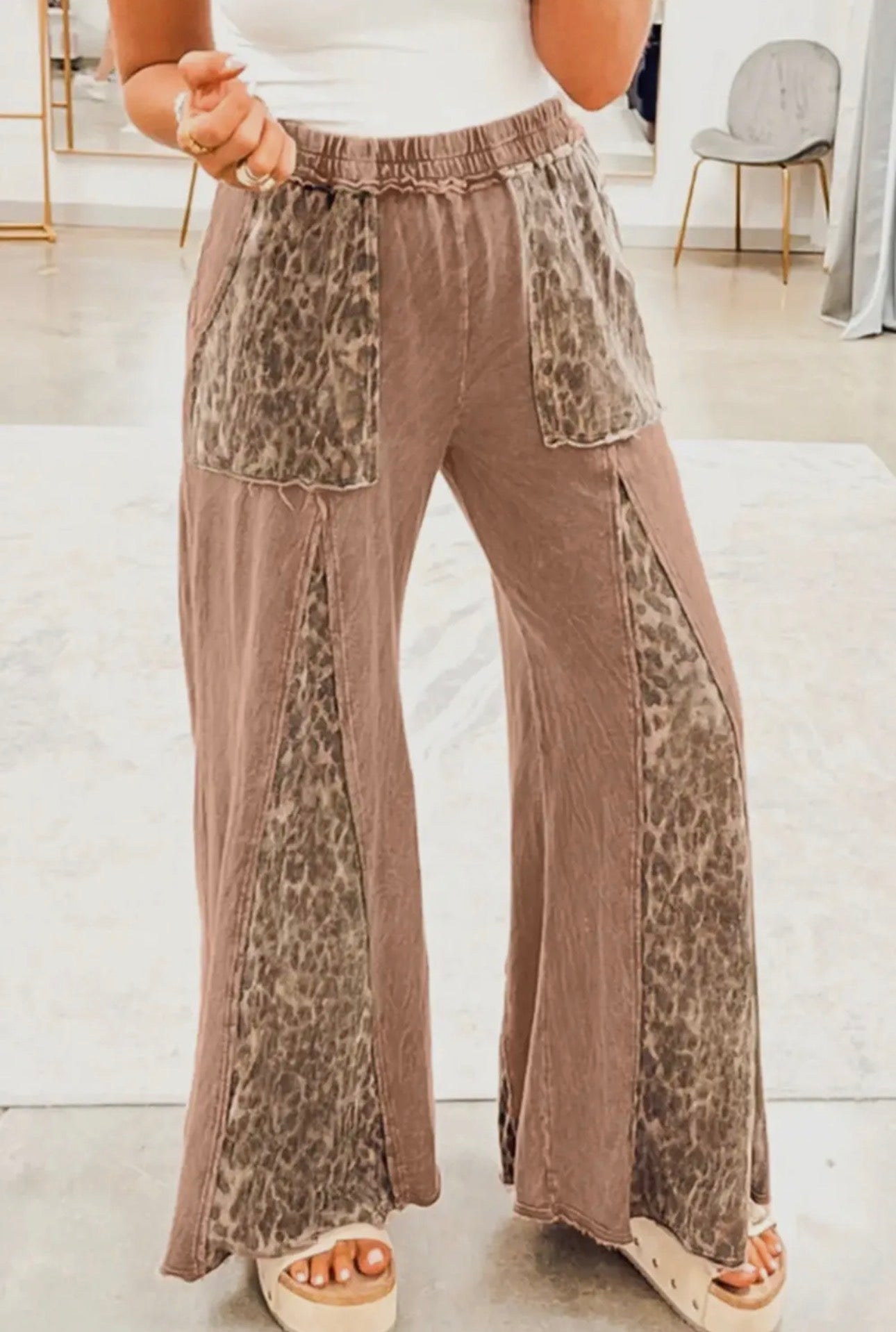 Laid-back comfort meets effortless style in the Cocoa Canyon Leopard Pants. Designed with a relaxed wide-leg fit and soft, washed fabric, these pants bring easy hippie-chill vibes with a trendy leopard twist. The earthy cocoa tone mixed with subtle leopard patchwork gives them that perfectly worn-in, desert-inspired look we can’t get enough of.