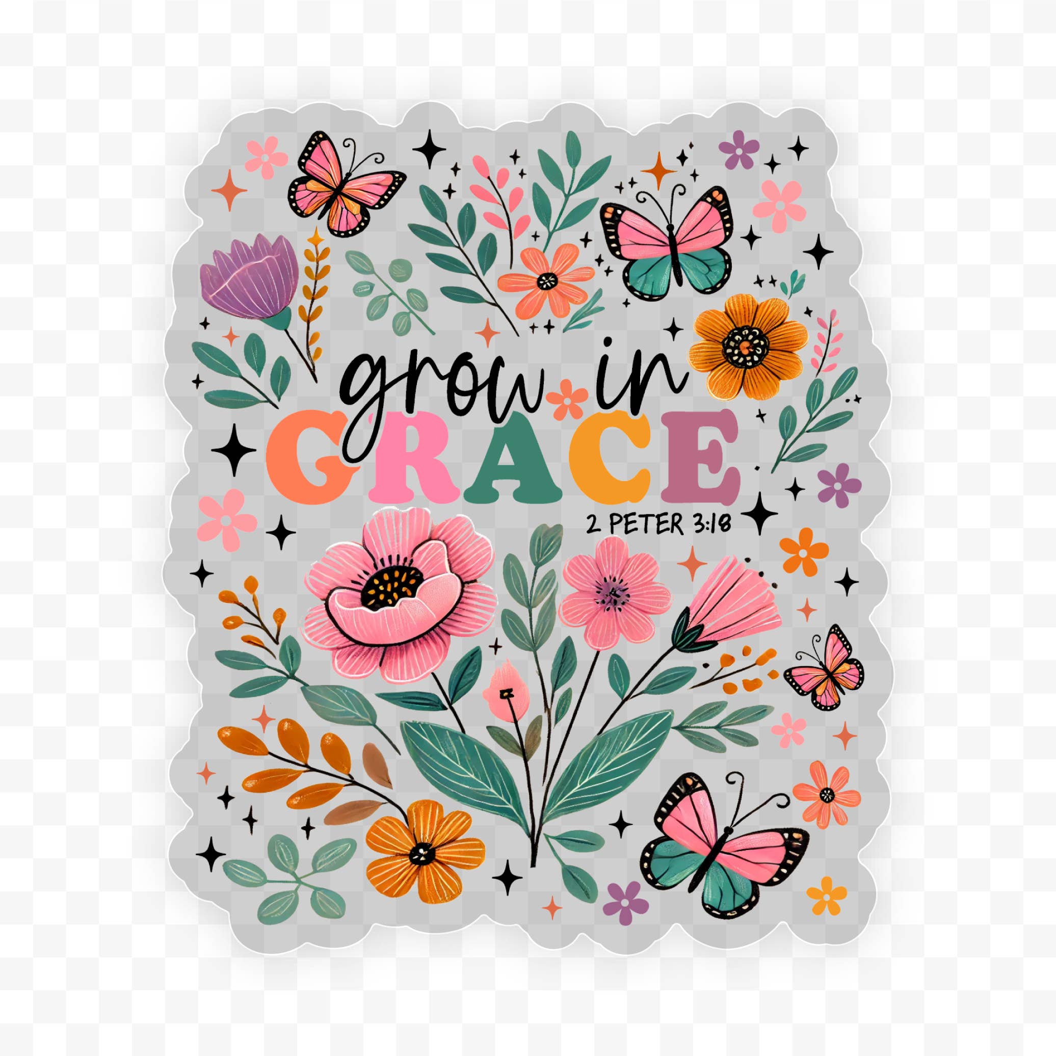 Grow In Grace Floral Vinyl Sticker, 3x3 in.