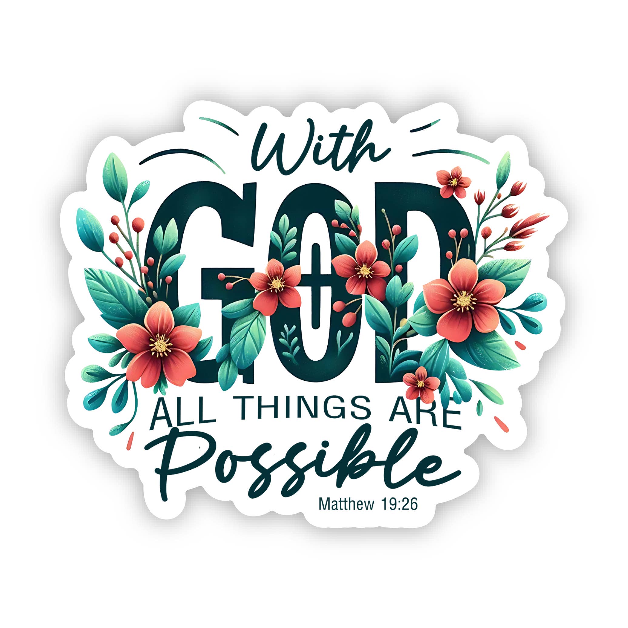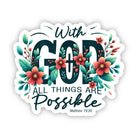 Floral With God All Things Are Possible Vinyl Sticker, 3x3 in.