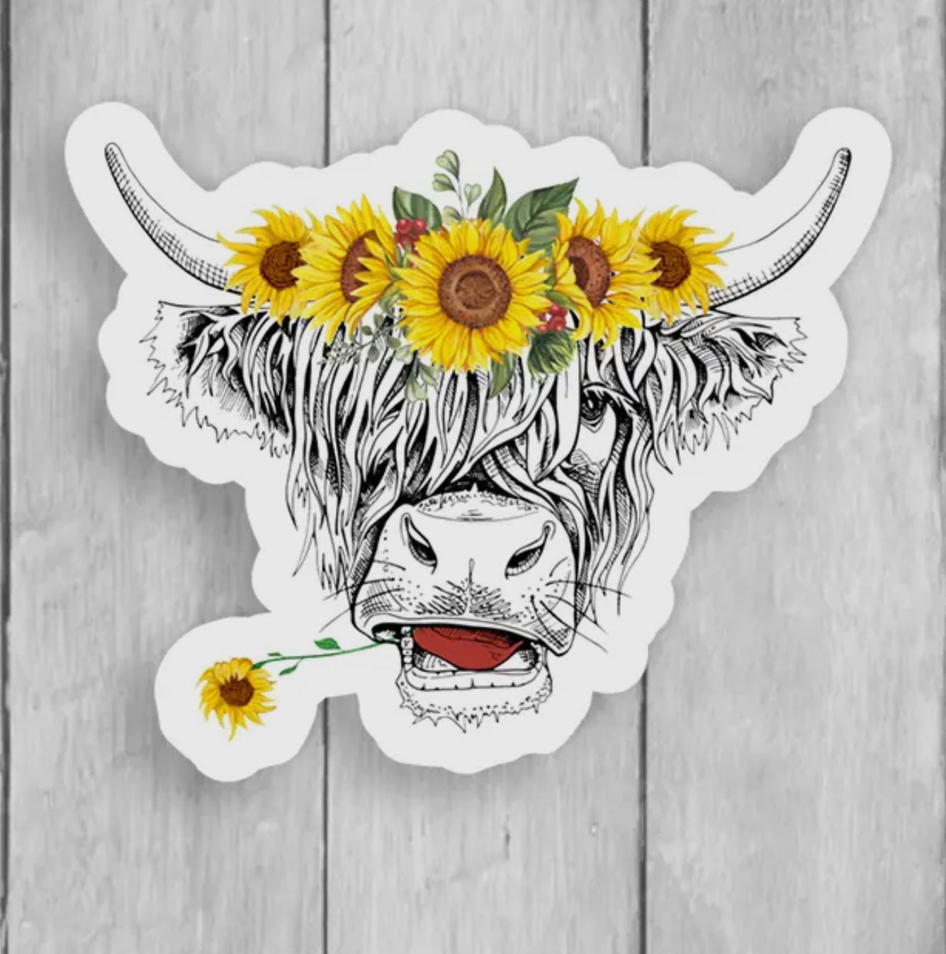 Summer Sunflower Cow Vinyl Sticker