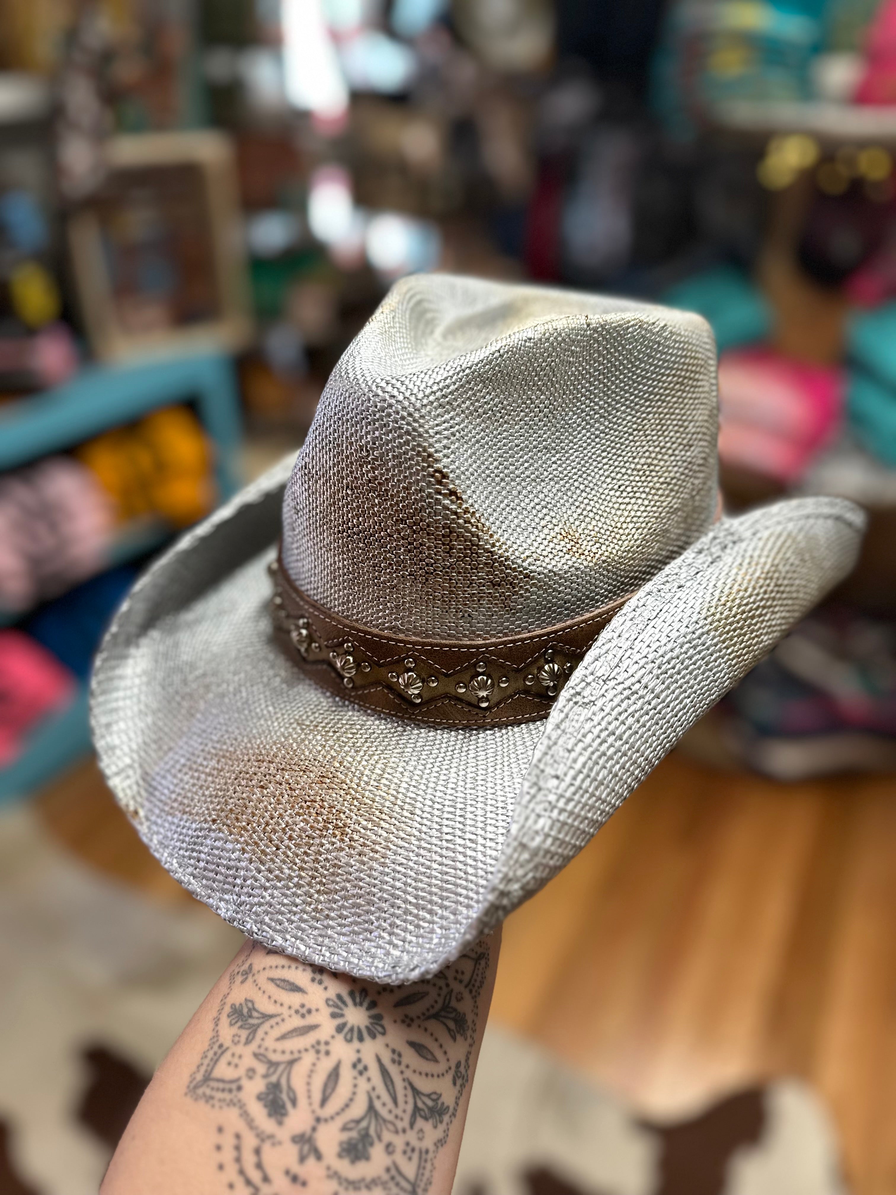 Iverson Toyo Straw Banded Studded Western Drifter Cowboy Hat