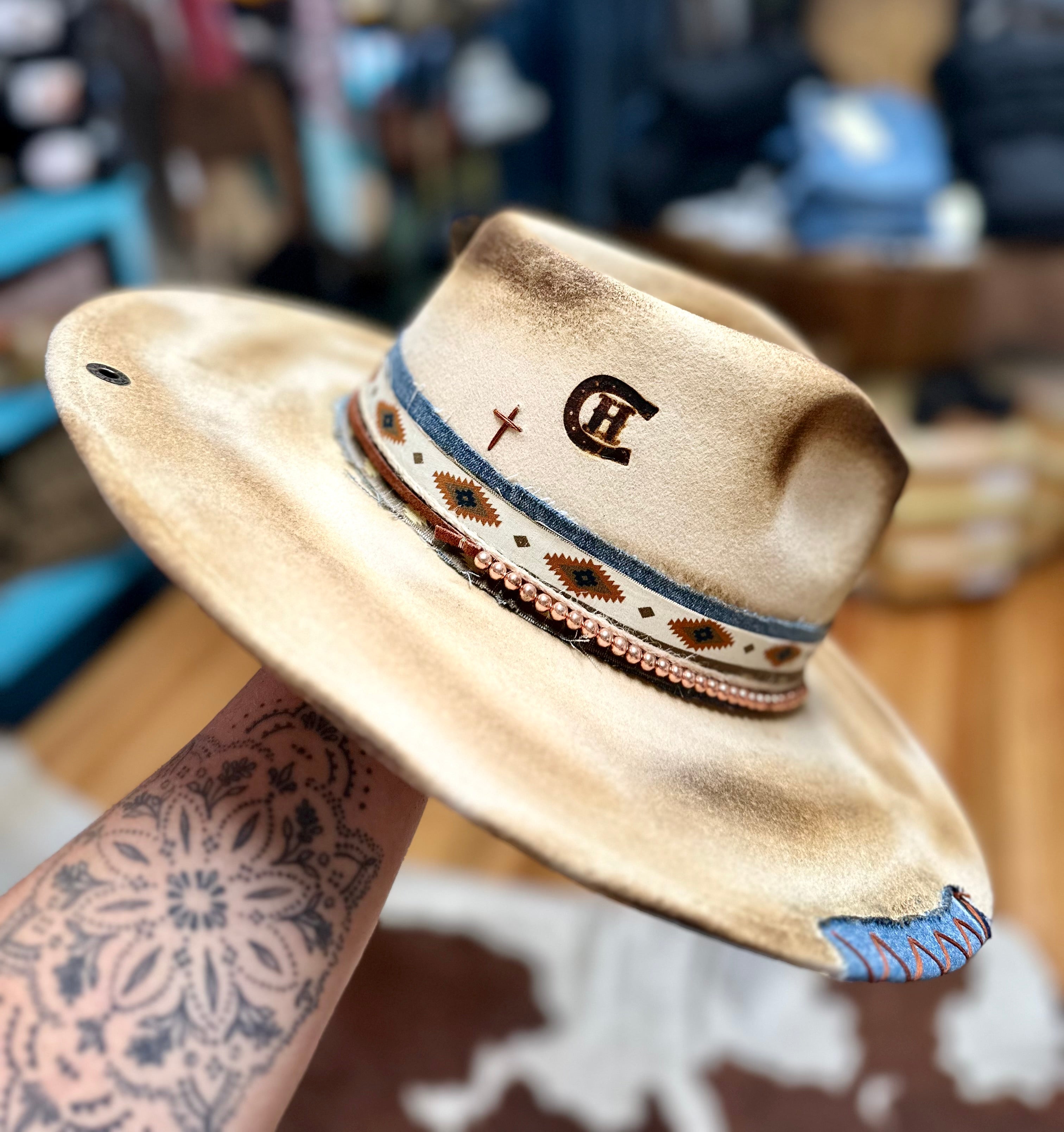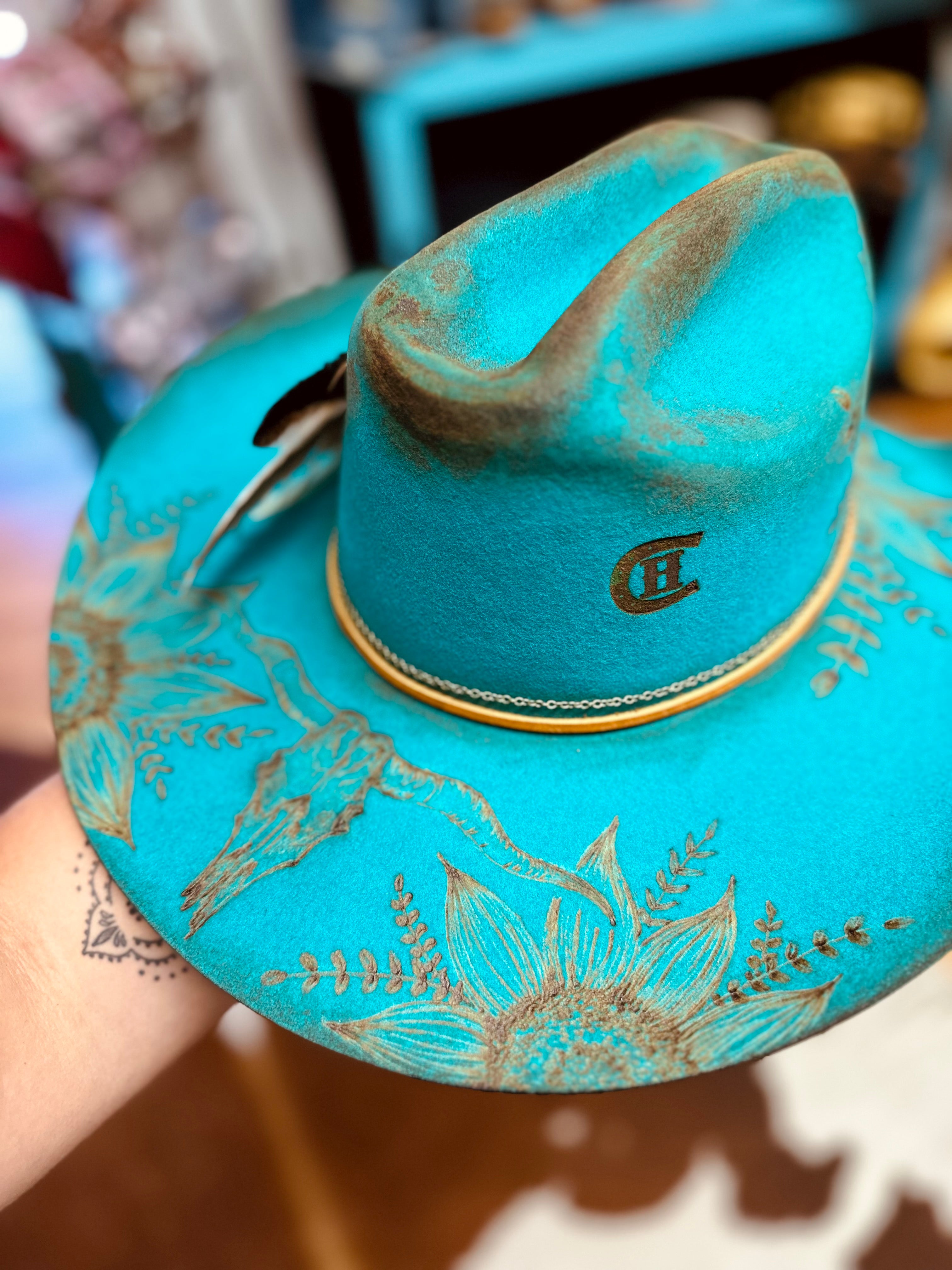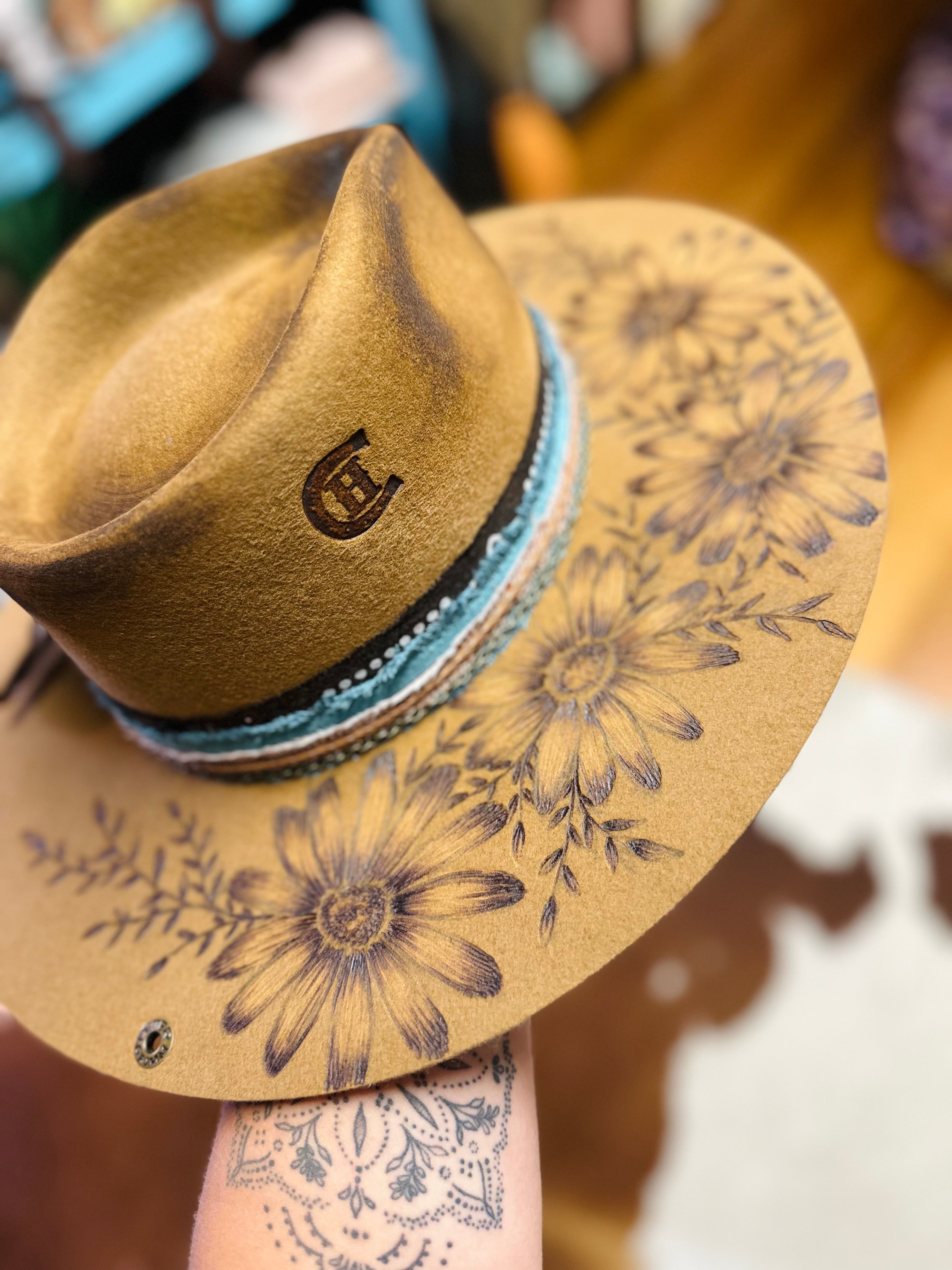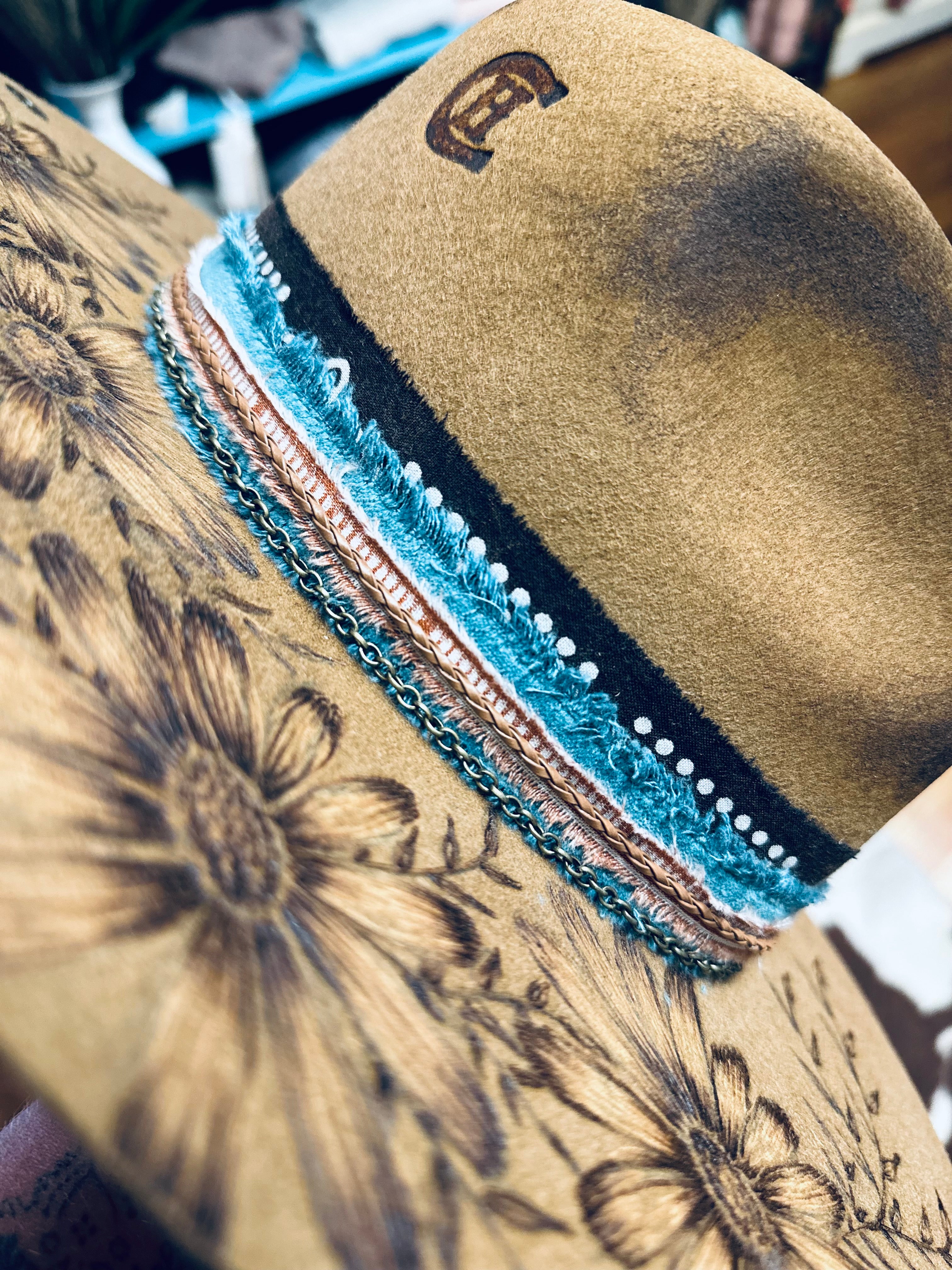 All sales are final. Discounts and gift cards do not apply to custom hat orders. All hats are custom made by Country Hippie. No two hats will be the exact same because they are uniquely made one at a time. There is a two to four week turnaround time for Custom Hat orders. Hats can be customized to your preference. Once ordered, message me with your details.