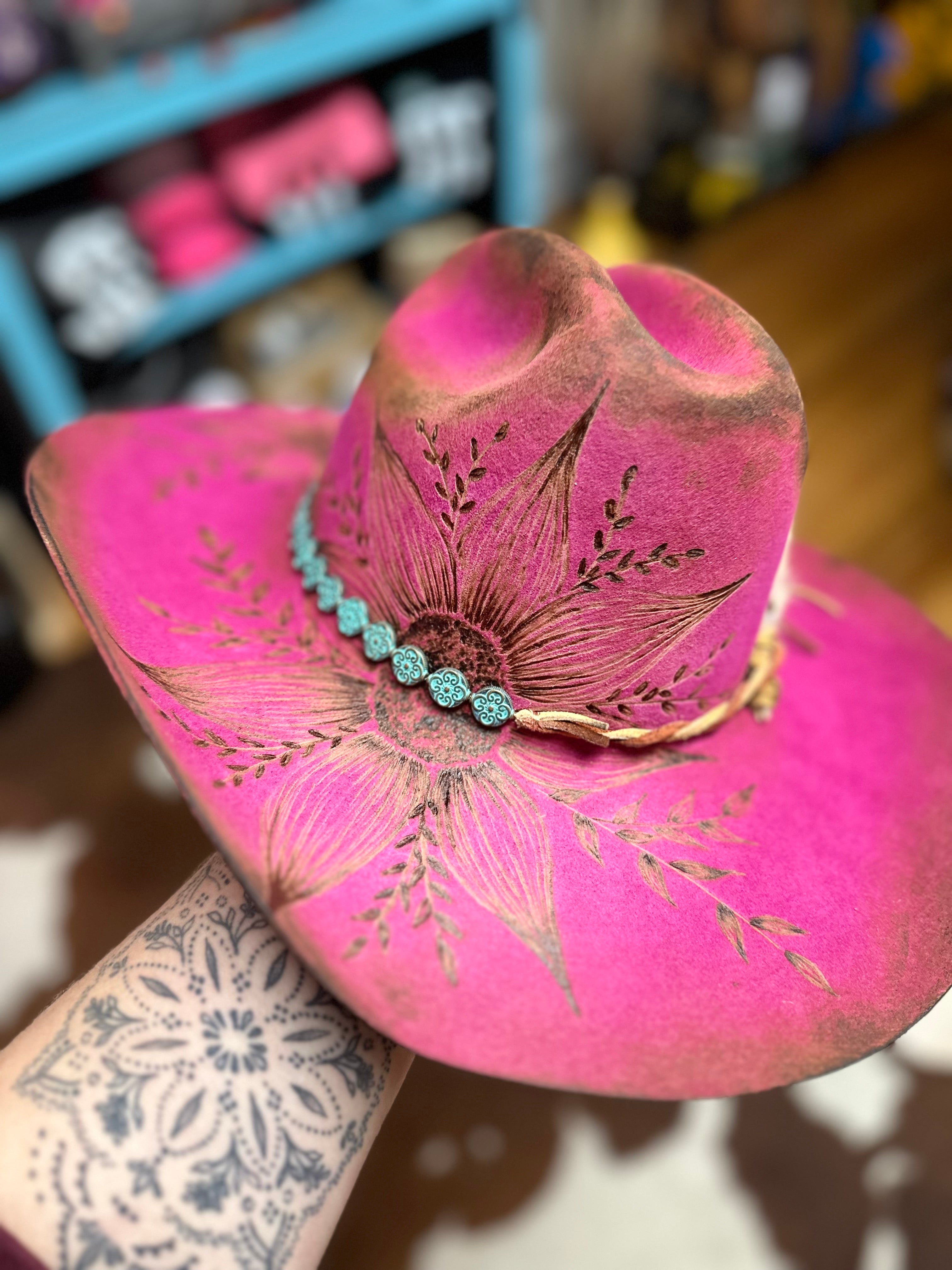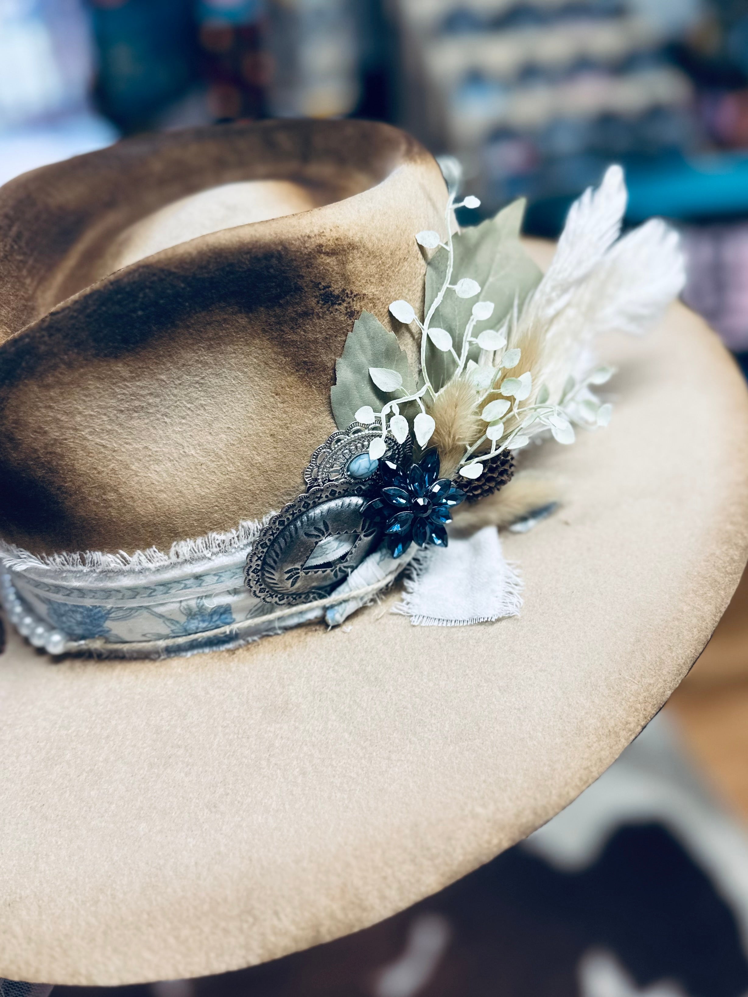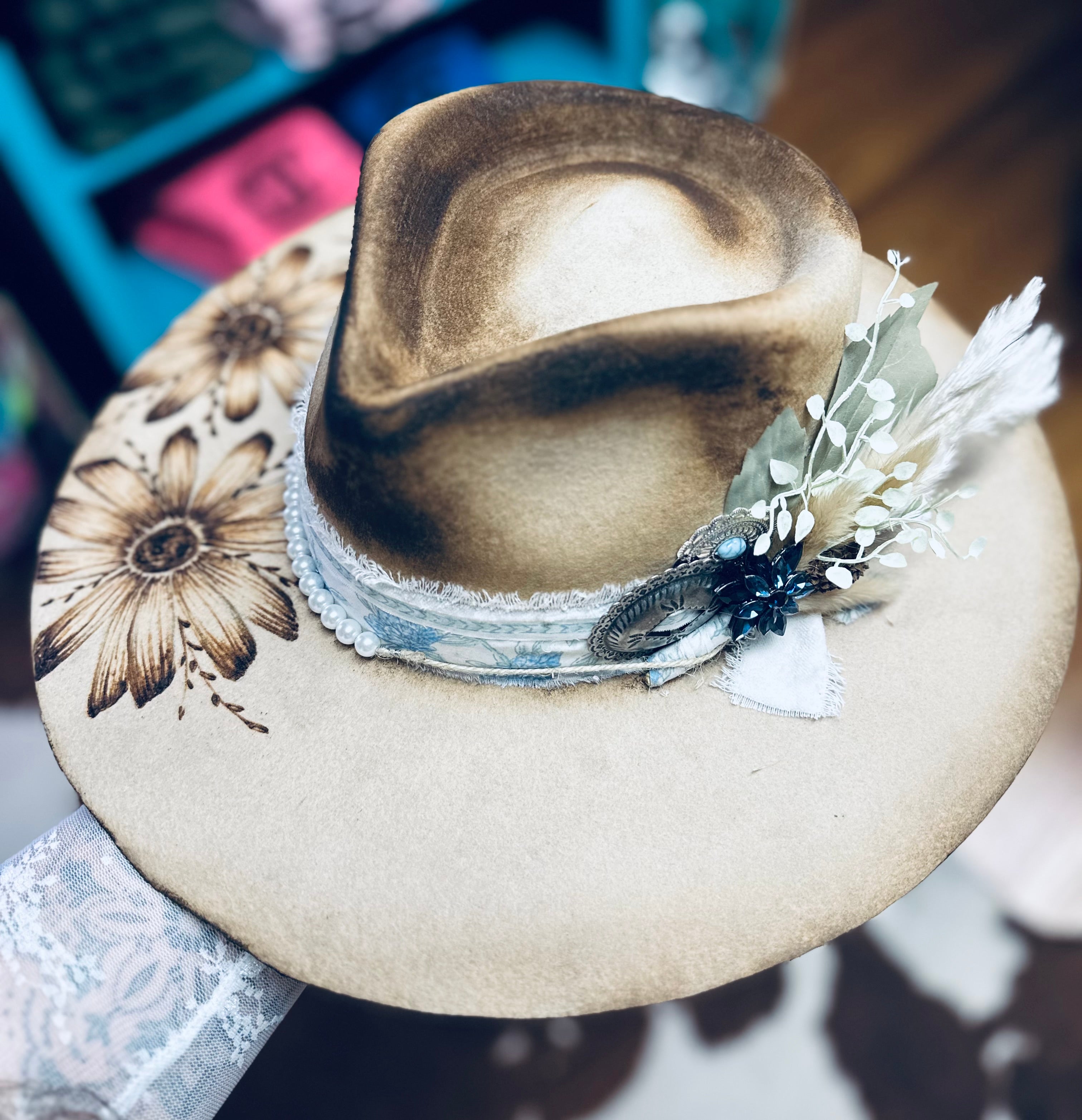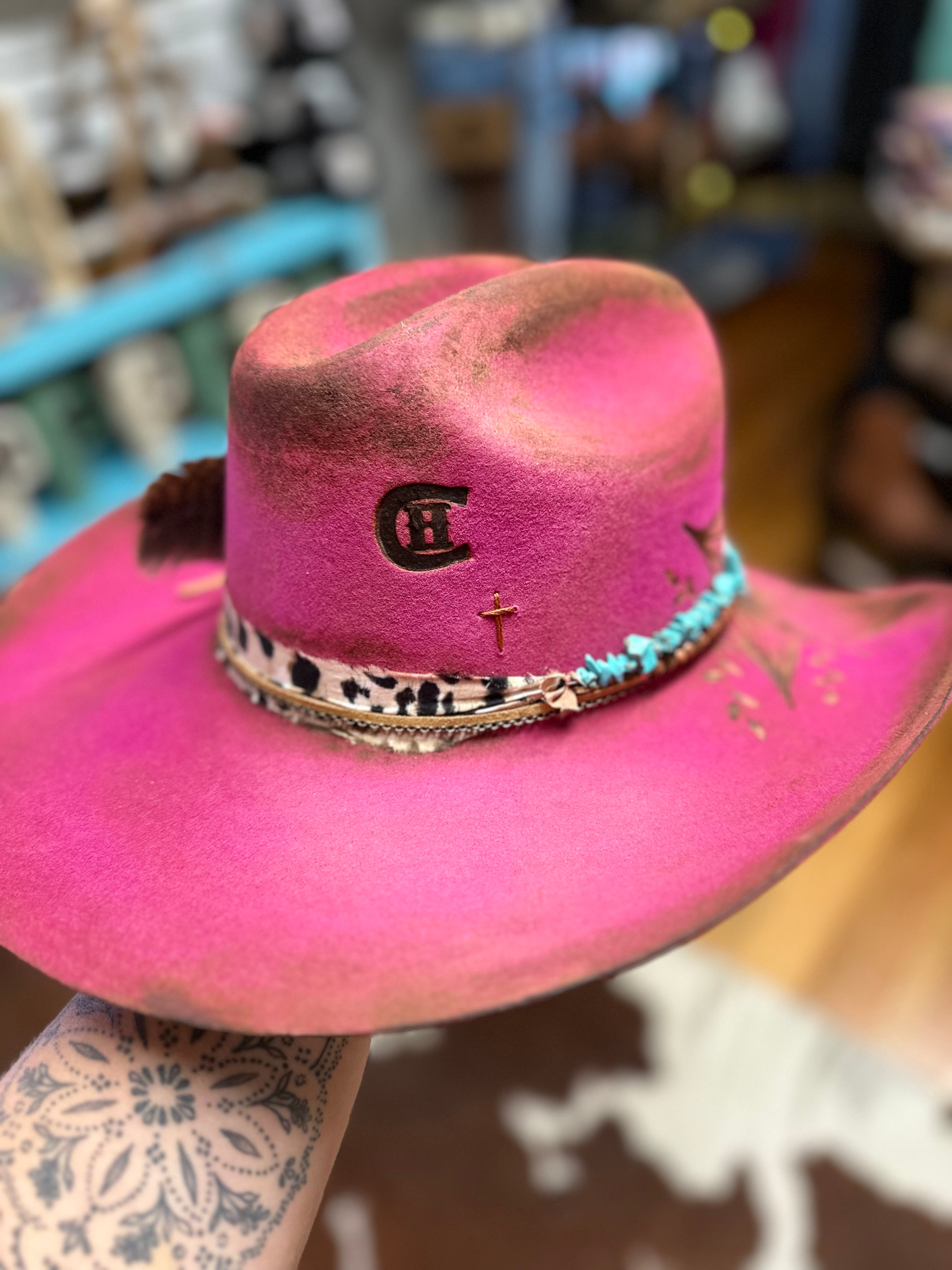 All sales are final. Discounts and gift cards do not apply to custom hat orders. All hats are custom made by Country Hippie. No two hats will be the exact same because they are uniquely made one at a time. There is a two to four week turnaround time for Custom Hat orders. Hats can be customized to your preference. Once ordered, message me with your details.