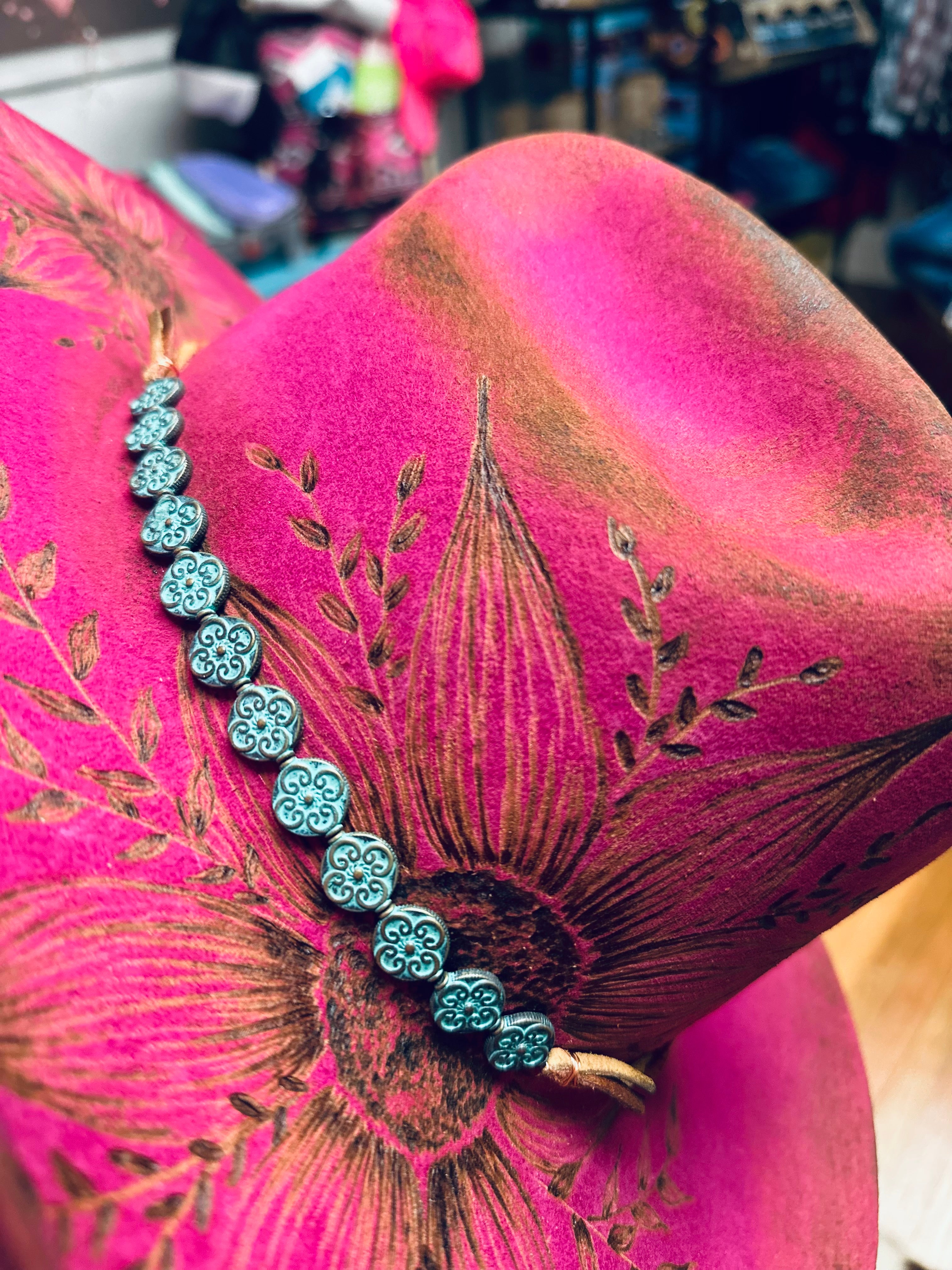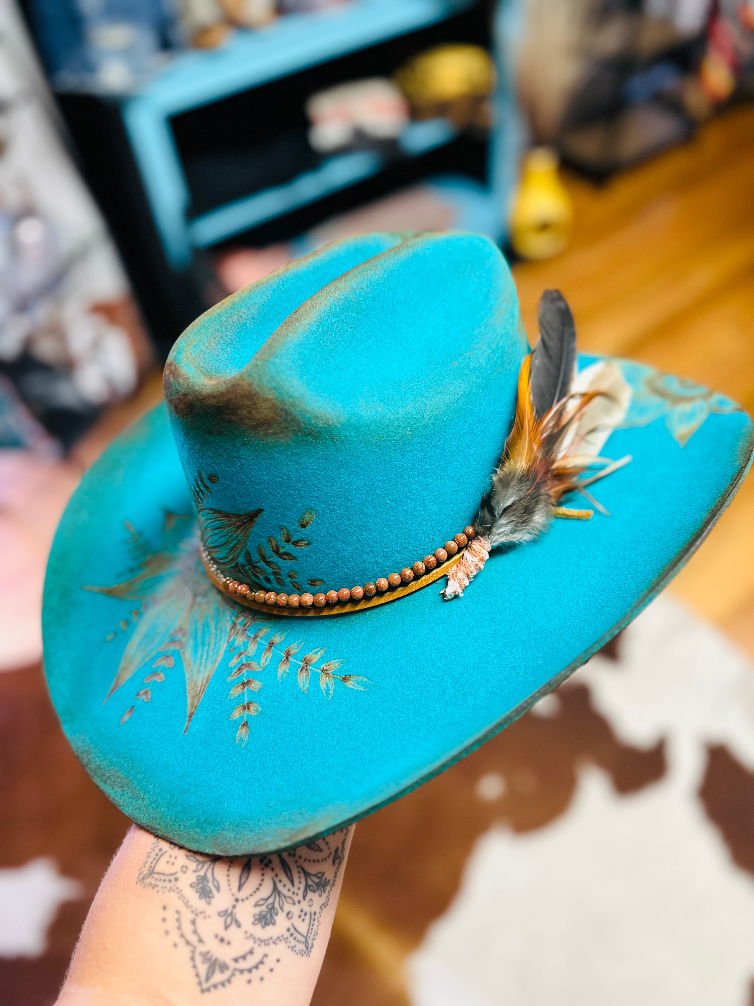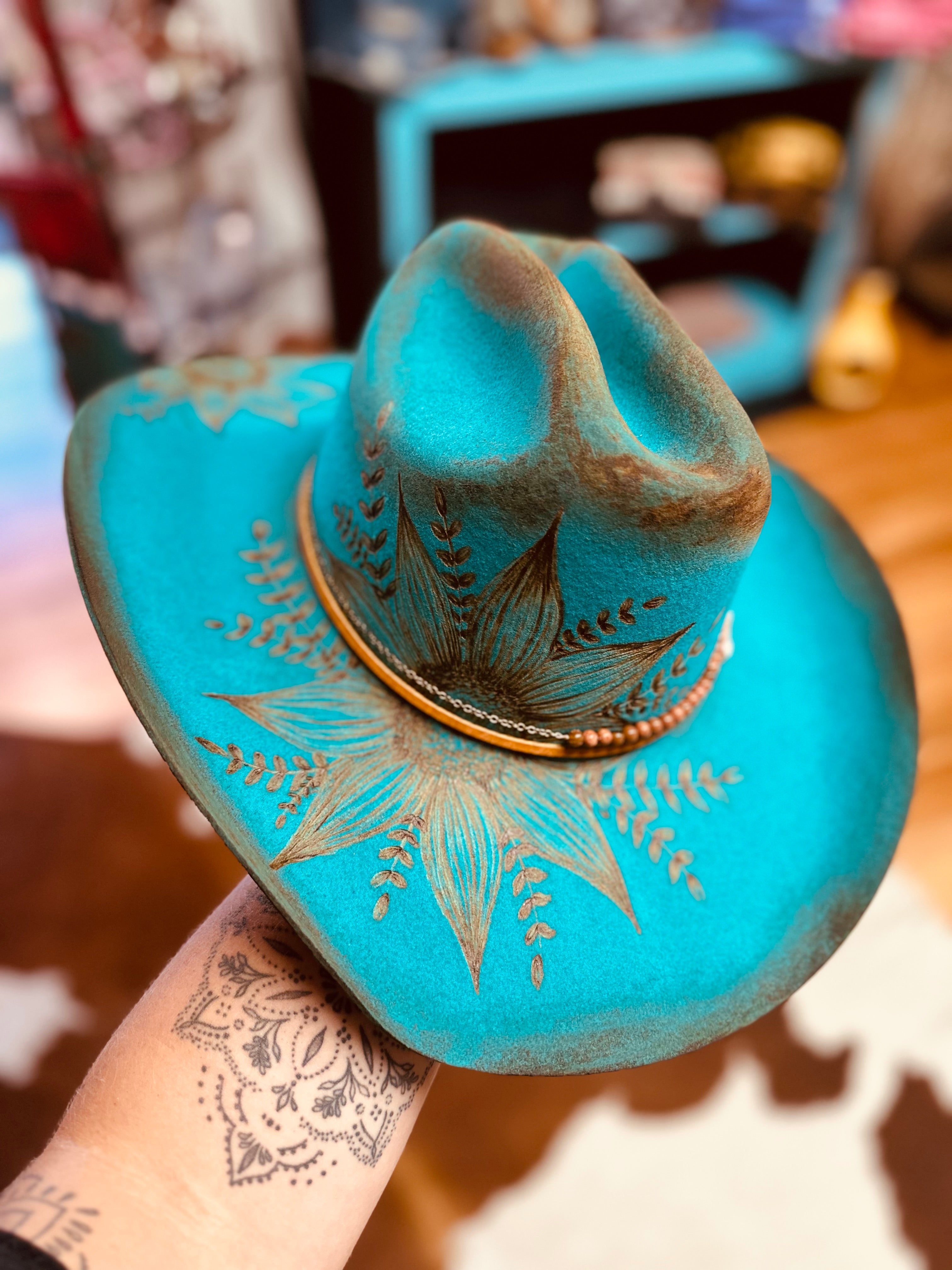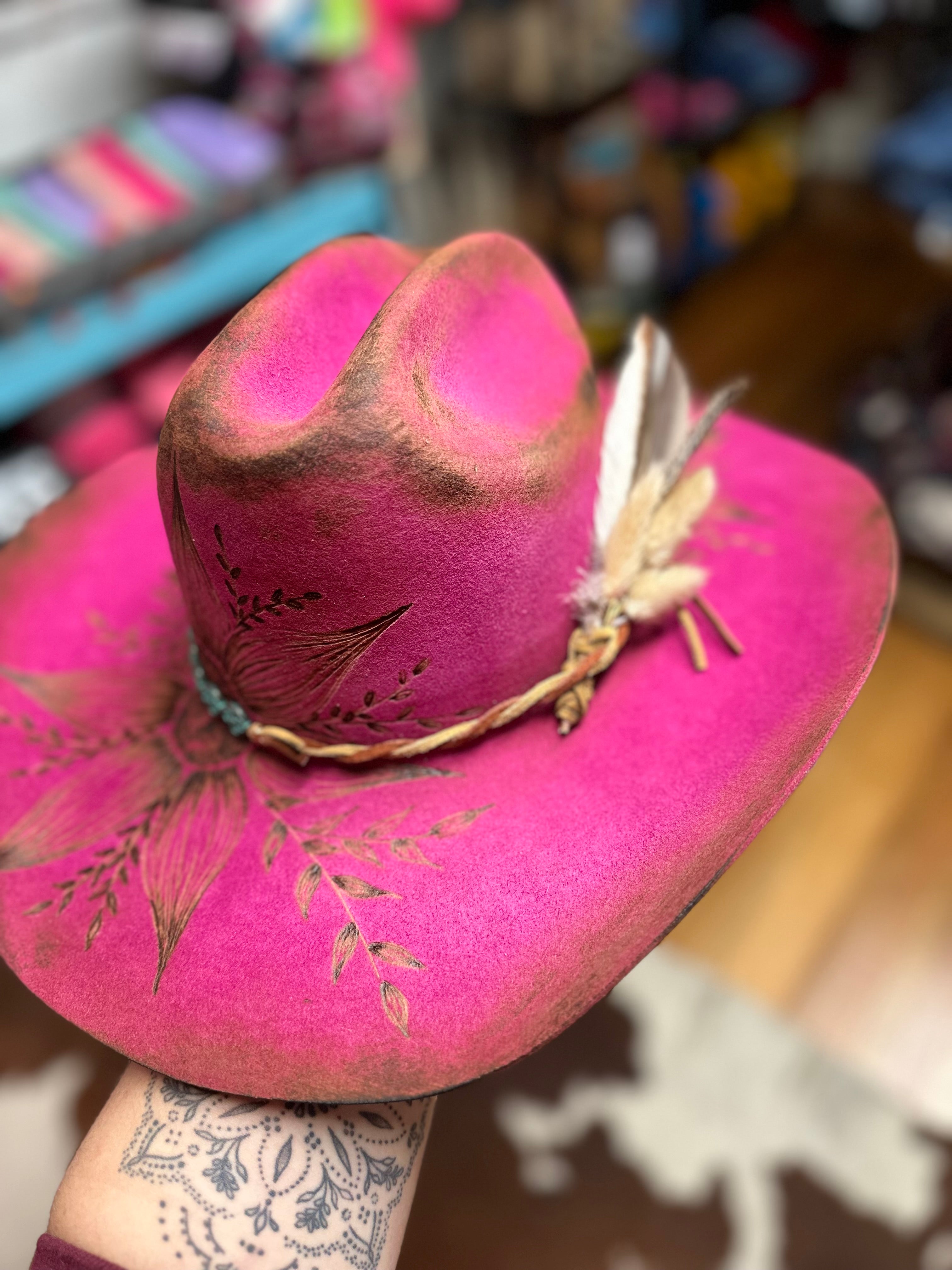 All sales are final. Discounts and gift cards do not apply to custom hat orders. All hats are custom made by Country Hippie. No two hats will be the exact same because they are uniquely made one at a time. There is a two to four week turnaround time for Custom Hat orders. Hats can be customized to your preference. Once ordered, message me with your details.