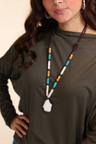 Cowgirl Chic Rhinestone White Stone Mixed Disk Bead Brown Leather Necklace