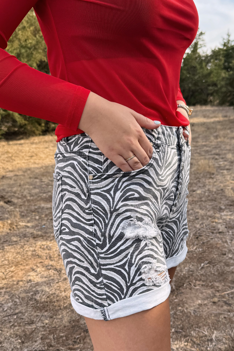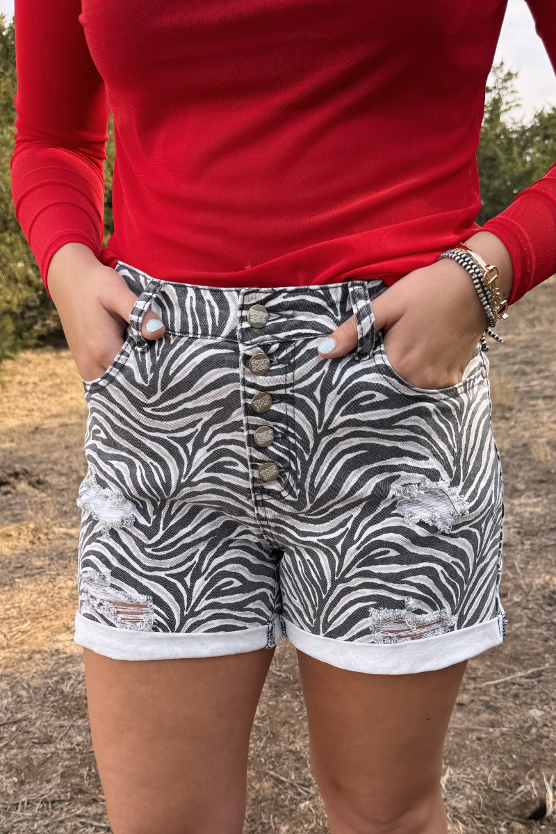 Make a bold statement in the Tennessee Walking Shorts—Zebra. Crafted from denim with an eye-catching zebra print, these shorts feature a classic button fly for timeless style and secure fit. Perfect for warm-weather adventures, casual outings, or turning heads wherever you go. Pair with your favorite tee for effortless, standout style.