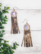 Texas Chica Floral Iridescent Cowhide Fringe Earrings