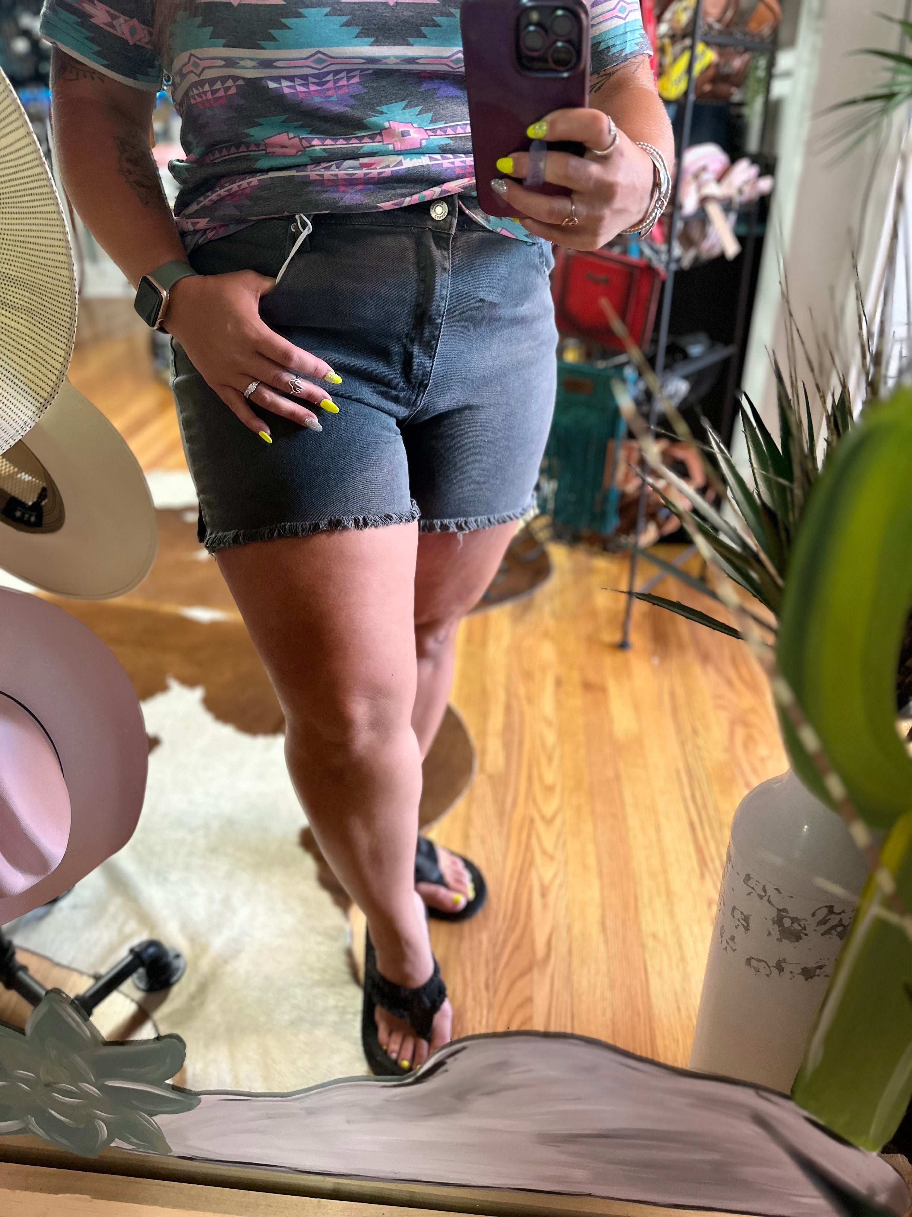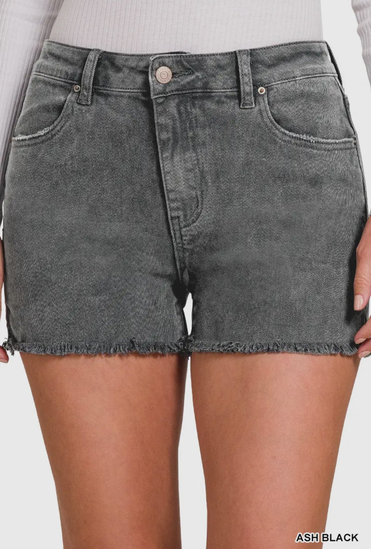 Acid Washed Frayed Shorts - Ash Black