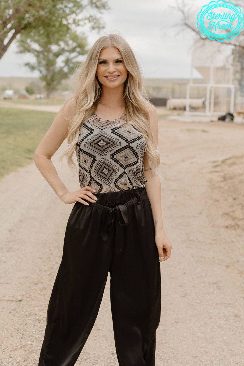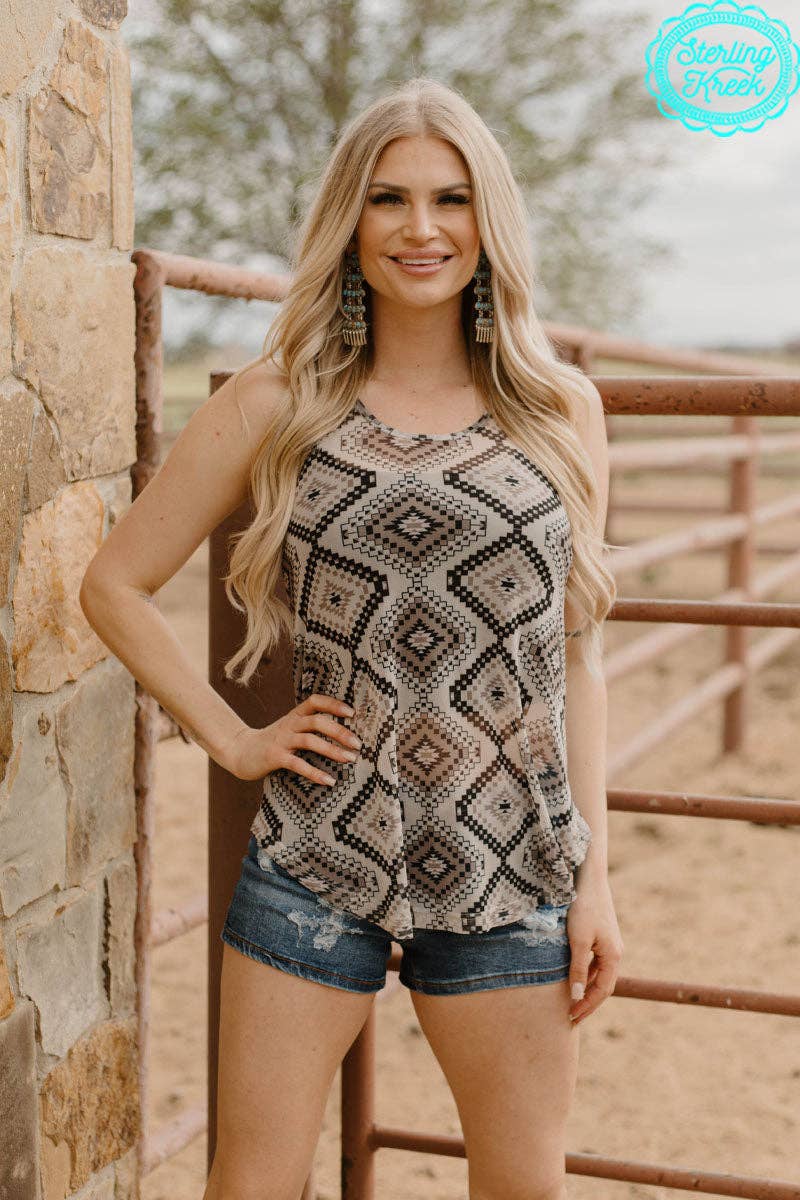 Get ready to hit a home run in this cream mesh tank top with a black aztec design. The lightweight fabric keeps you cool while the unique design adds a touch of fun. Perfect for a day at the lake or a night out with friends. 96% polyester 4% spandex SIZE LENGTH CHEST STRAP WIDTH XS 24.5" 16.5" 1.5" S 25.5" 17.5" 2" M 25.5" 19" 2" L 26" 19.5" 2" XL 26.5" 21" 2.5" 2X 27" 23" 2.5" 3X 28" 24" 2.5"