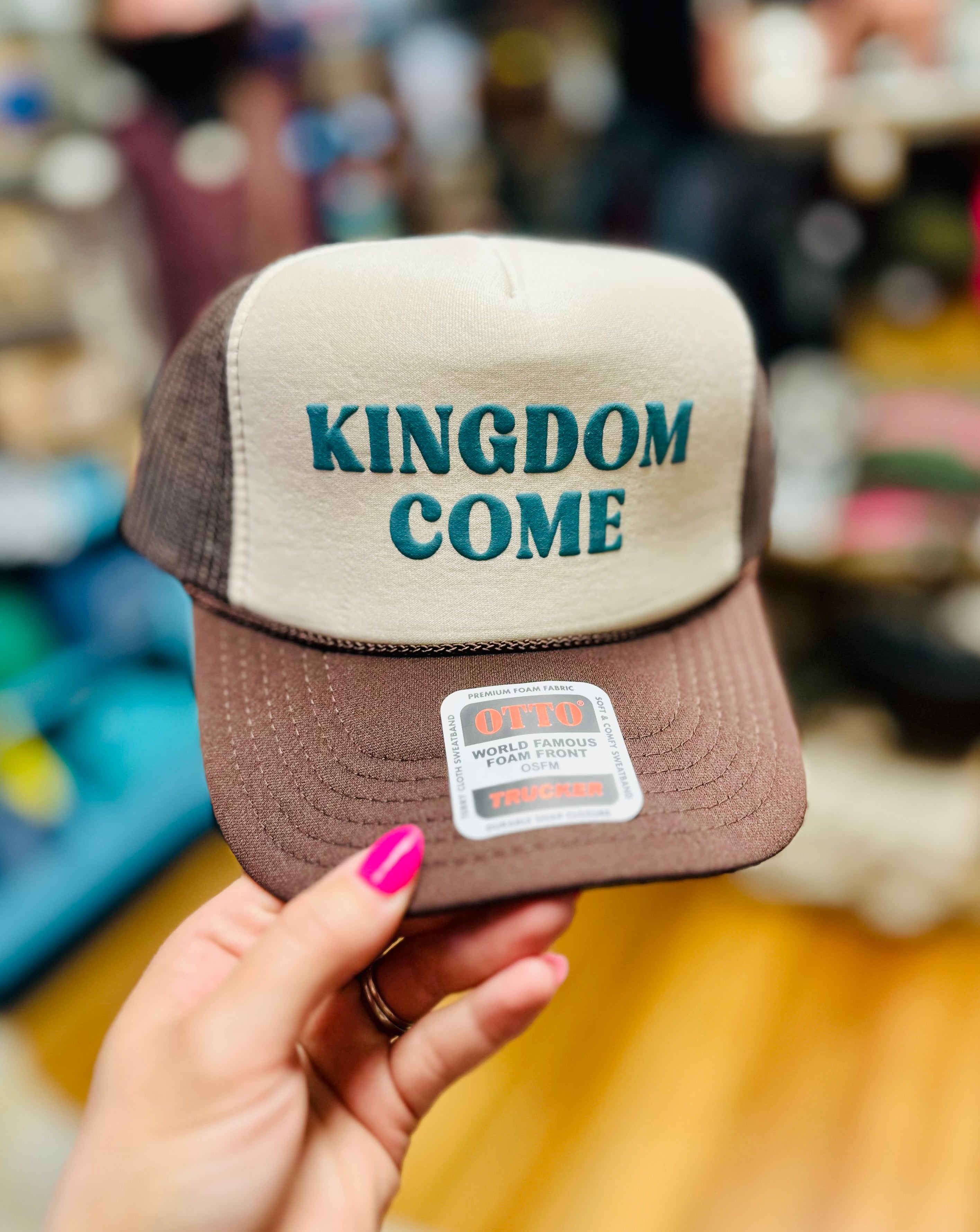 Get ready to make a statement with the Kingdom Come Trucker Hat! This one-of-a-kind hat features a stunning tan, brown, and teal color combination.