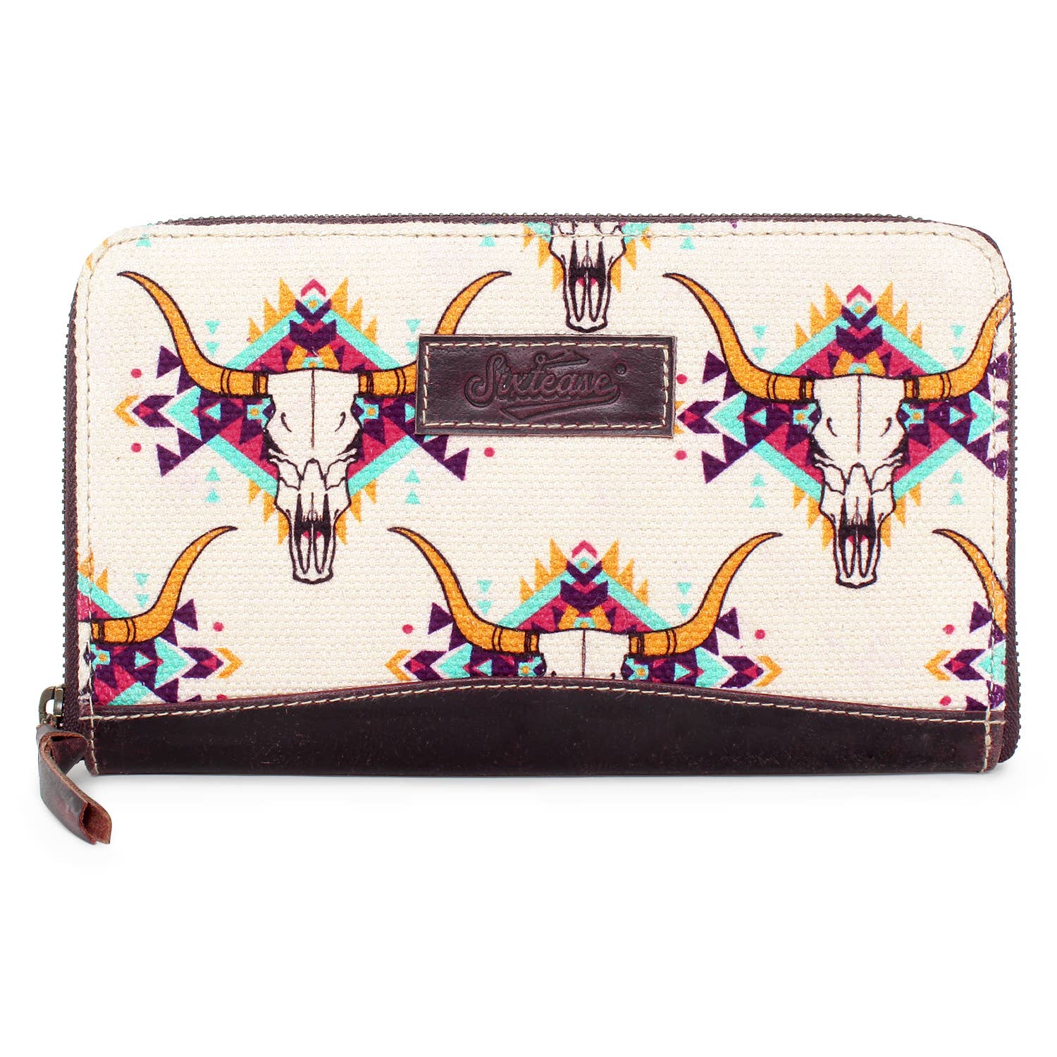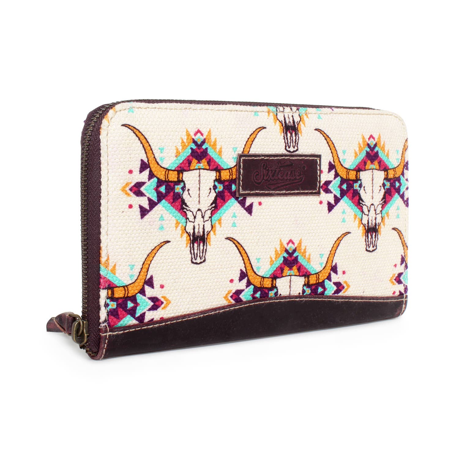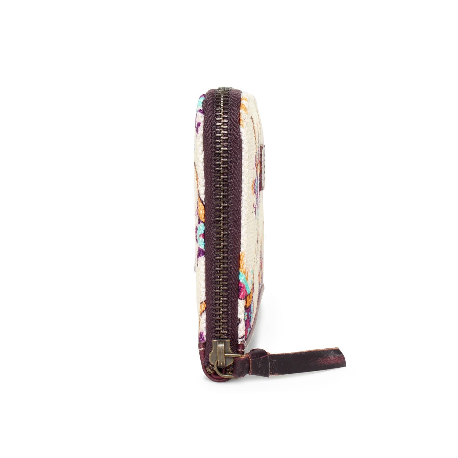 Up-cycled Canvas Bags Sub Category: Wallets Material :Rug, Up-cycled Canvas & Leather Utility (Outside) : 1 zip pocket at back. Utility (Inside) : 8 CC slots, 1 ID slot, 1 coin pocket, 1 Bill pocket,2 open compartments and 1 zip compartment. Lining: Poly Cotton Step Logo Printed Collection : The Funky Fresh Collection Fittings : Antique Finish Premium Hardwares Dimensions ( In Inches ) : 8.5 * 5 Handle : N/A Shoulder : N/A Closure : Genuine YKK Zipper