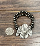 Big! Thunderbird Charm, 2-strand 6mm Navajo Bead Stretch Bracelet
