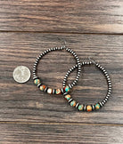 2.5" Long, Handmade 8mm Round Gemstone & 4mm Navajo Bead, 65mm Hoop Earrings