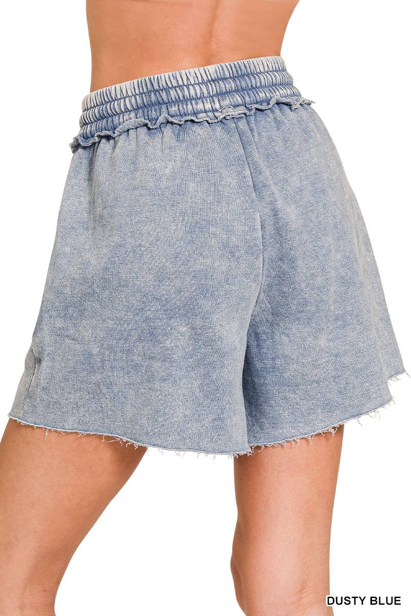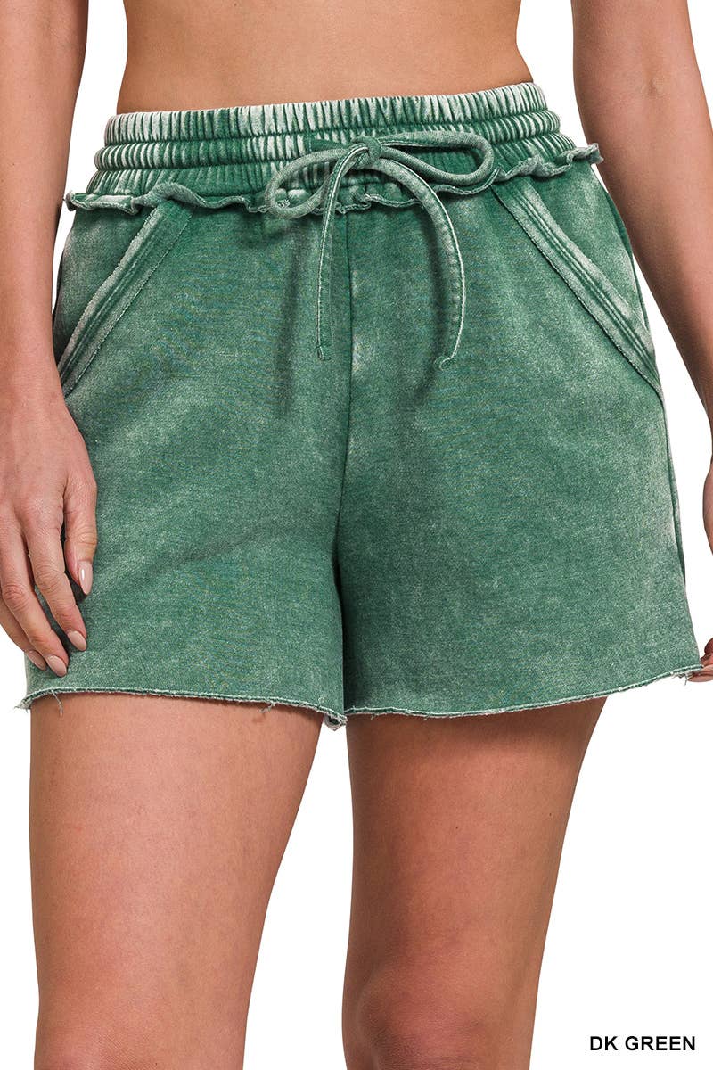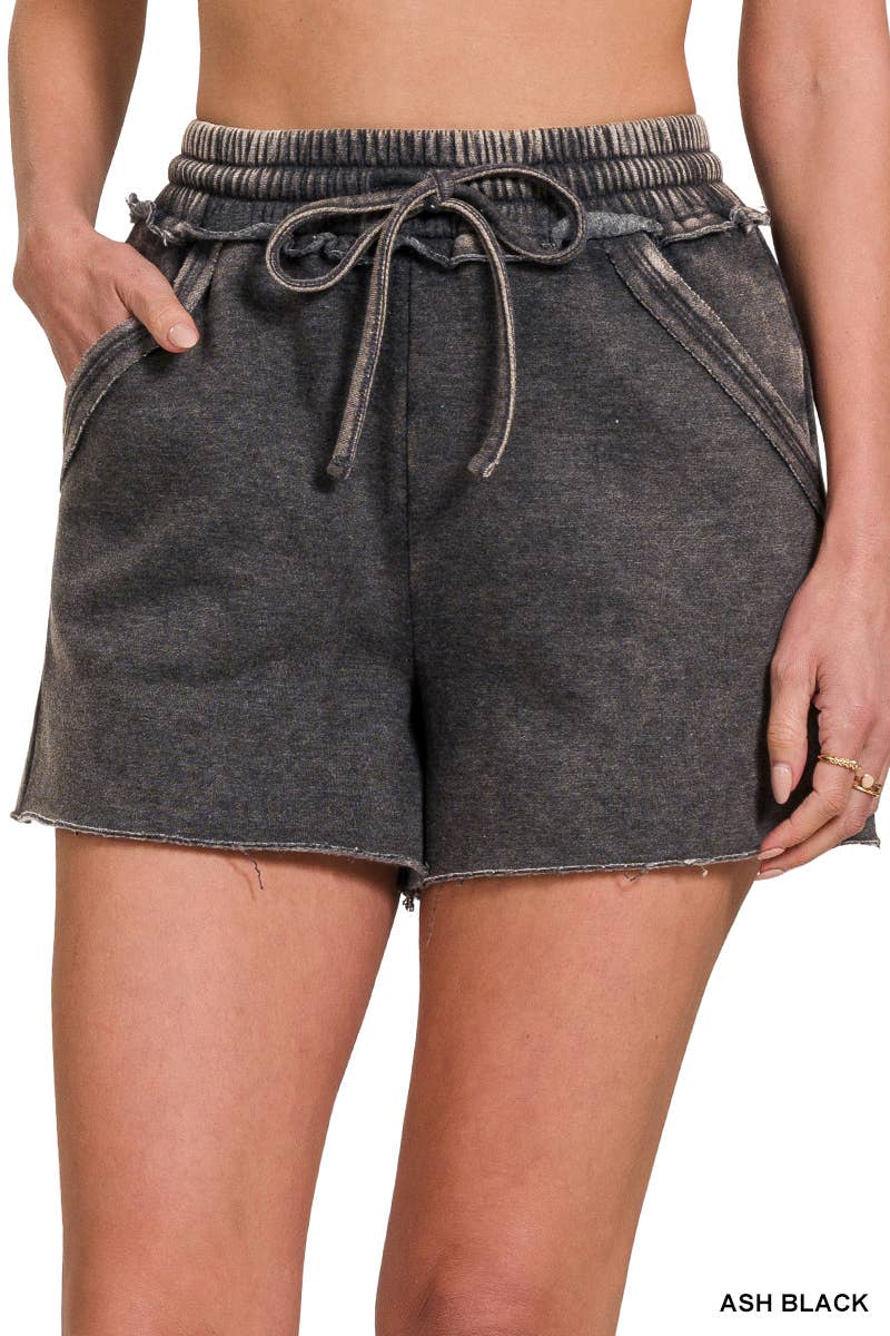 Acid Wash Fleece Drawstring Shorts With Pockets