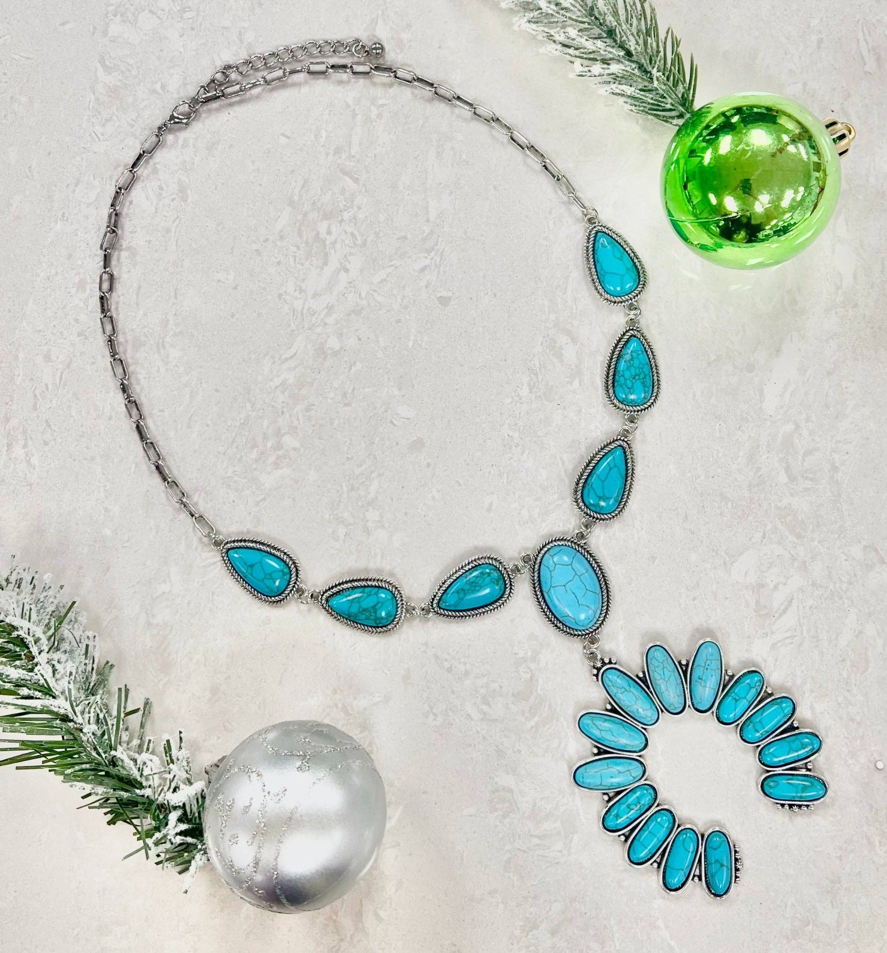 This necklace is a stunning embodiment of Southwestern allure and timeless beauty. It features a meticulously crafted squash blossom making it the perfect accessory to elevate any outfit and make a statement with style and grace. Embrace the spirit of the Southwest this exquisite piece that captures the essence of the Southwestern spirit. Details: