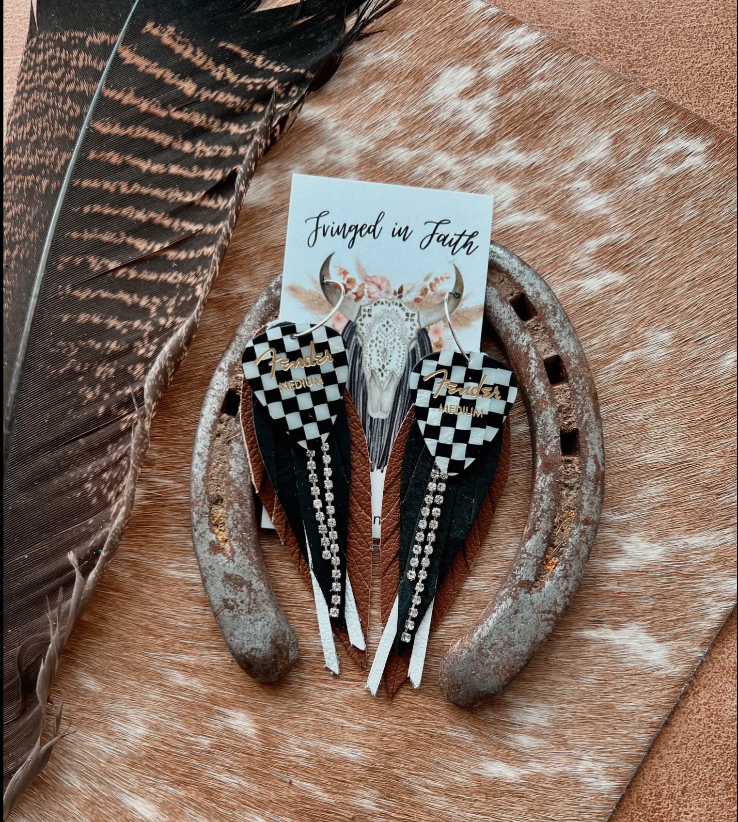 Checked Out Fringe Earrings- Brown