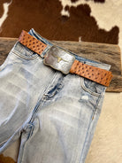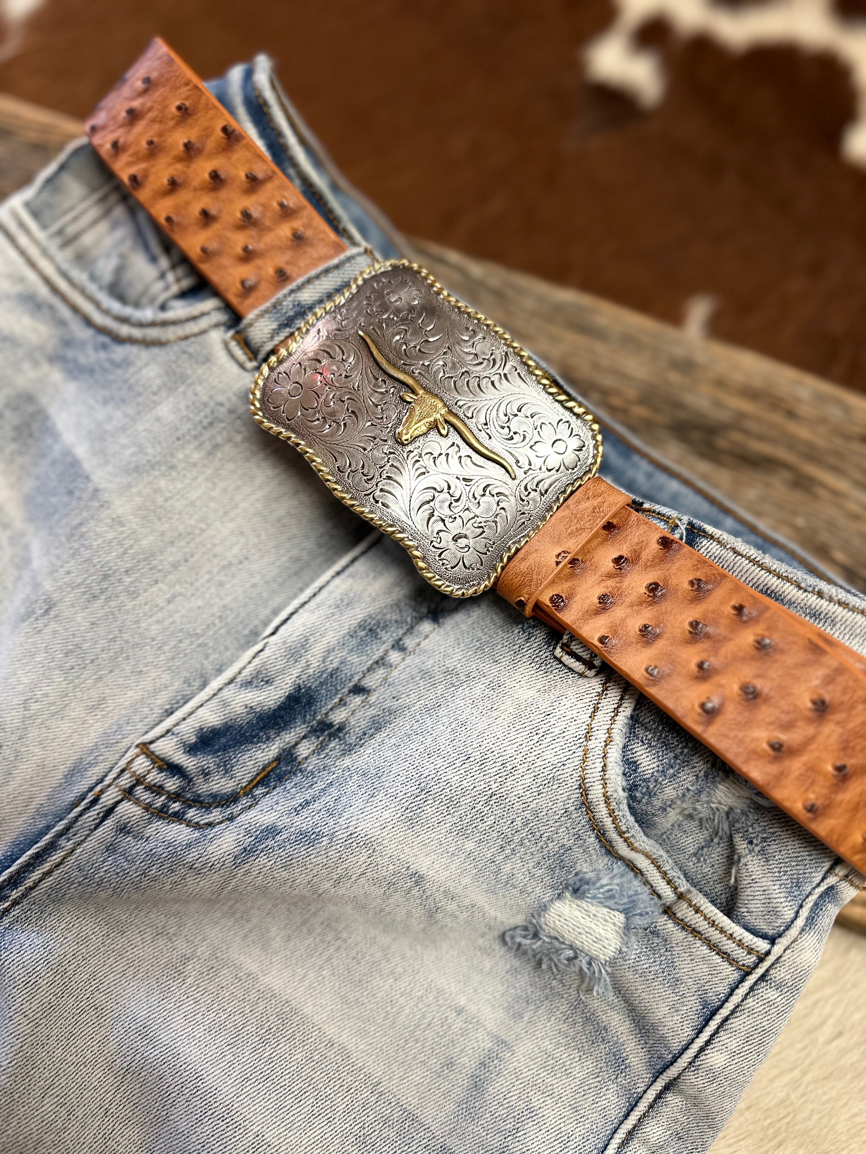Copper Western Longhorn Buckle W/ Ostrich Belt