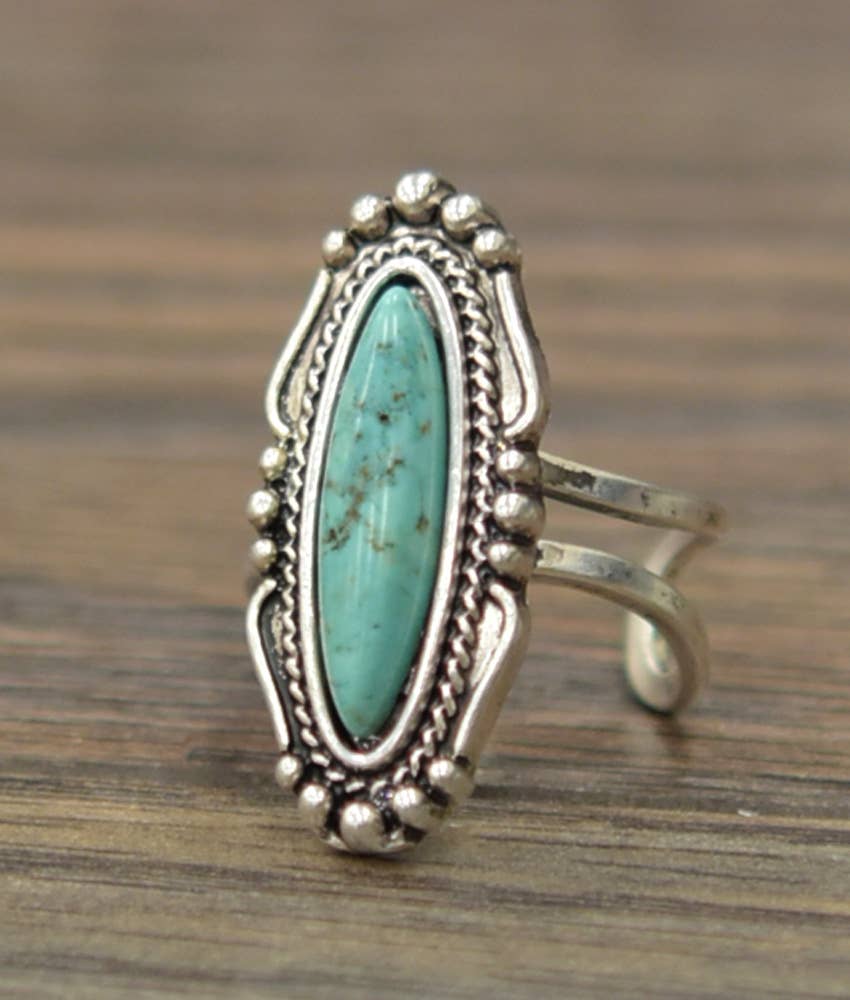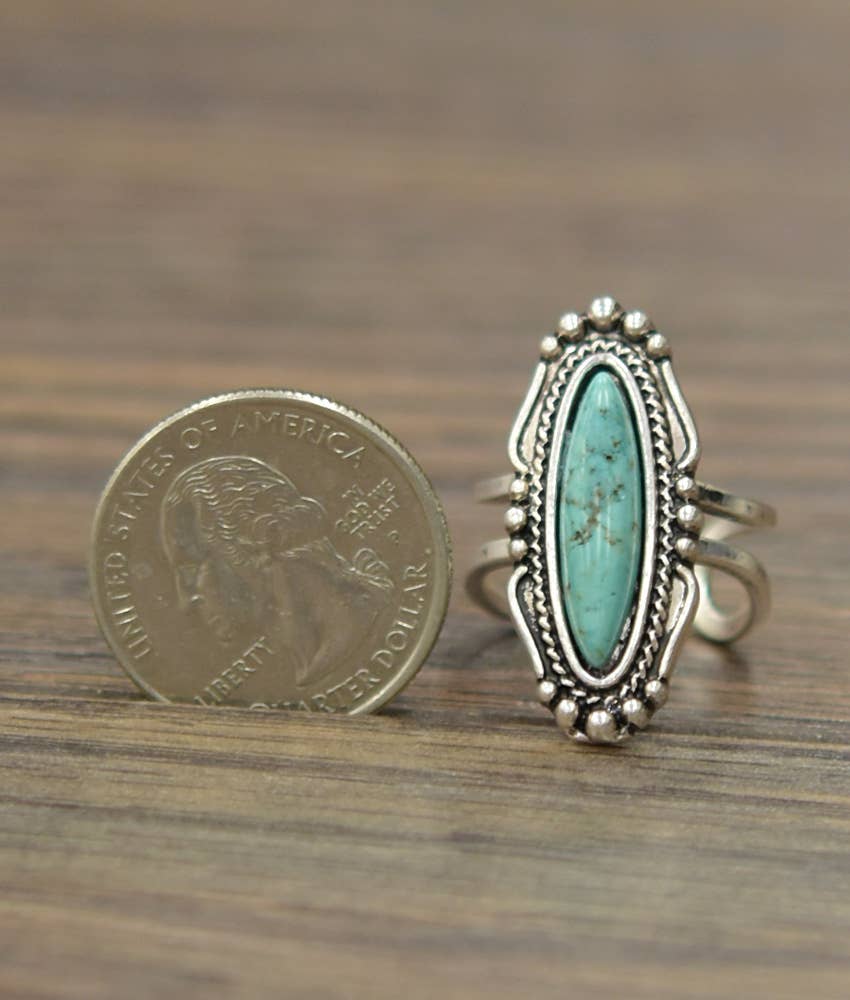 1.2" Long, Turquoise Ring, Brass Dual Adjustable Band